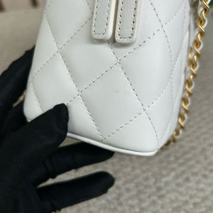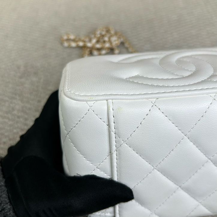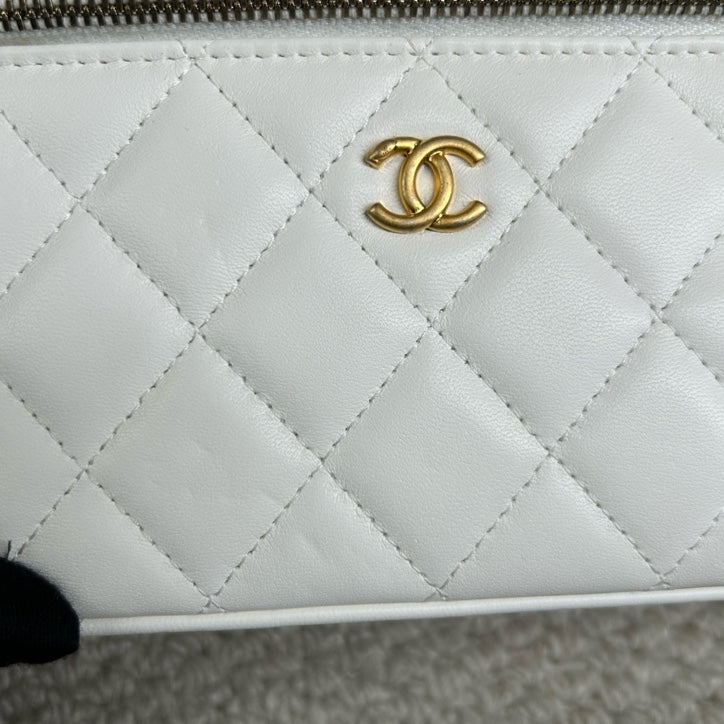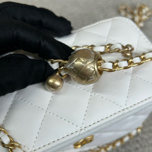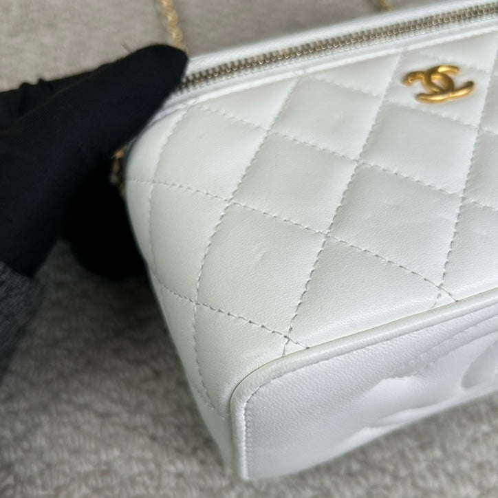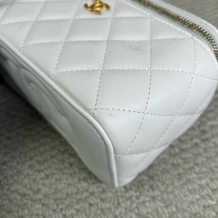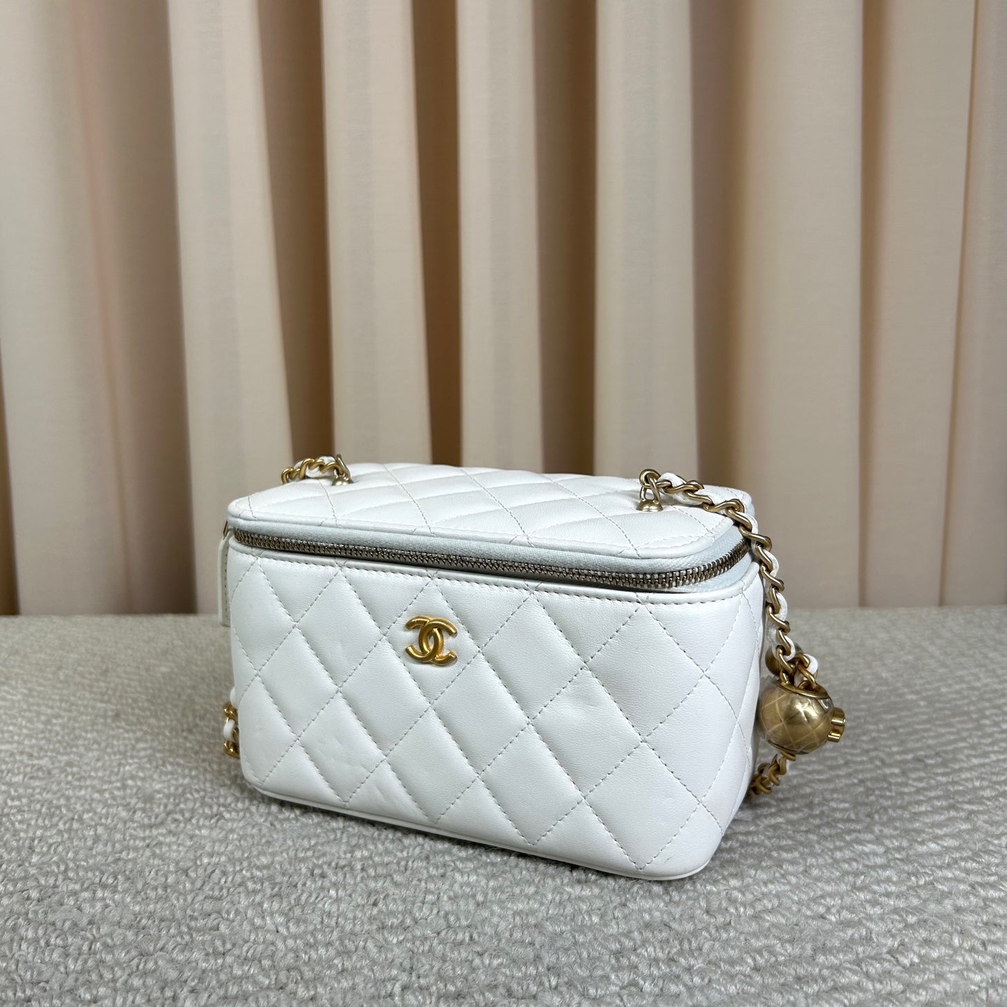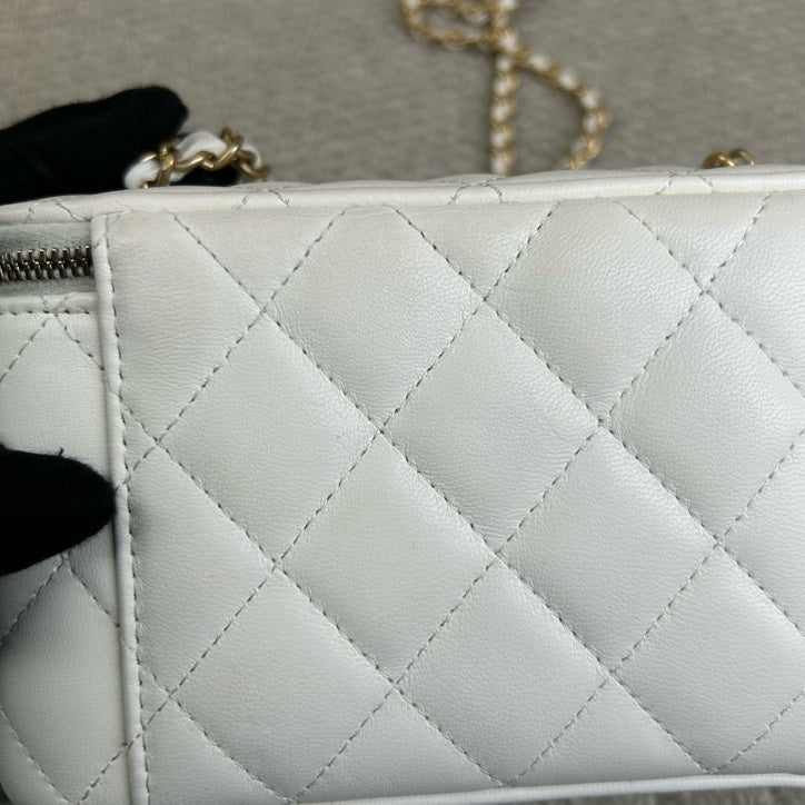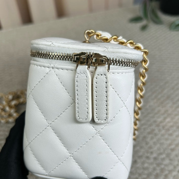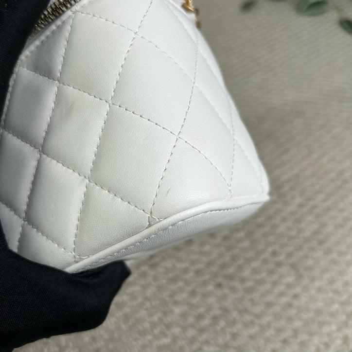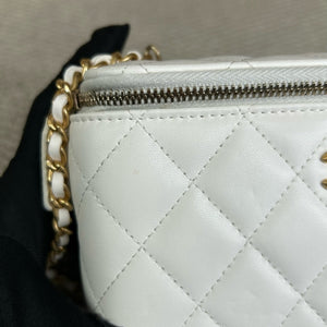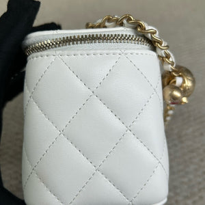 Authentic Pre-owned Chanel White Vanity Case with Gold Ball Chain Bag