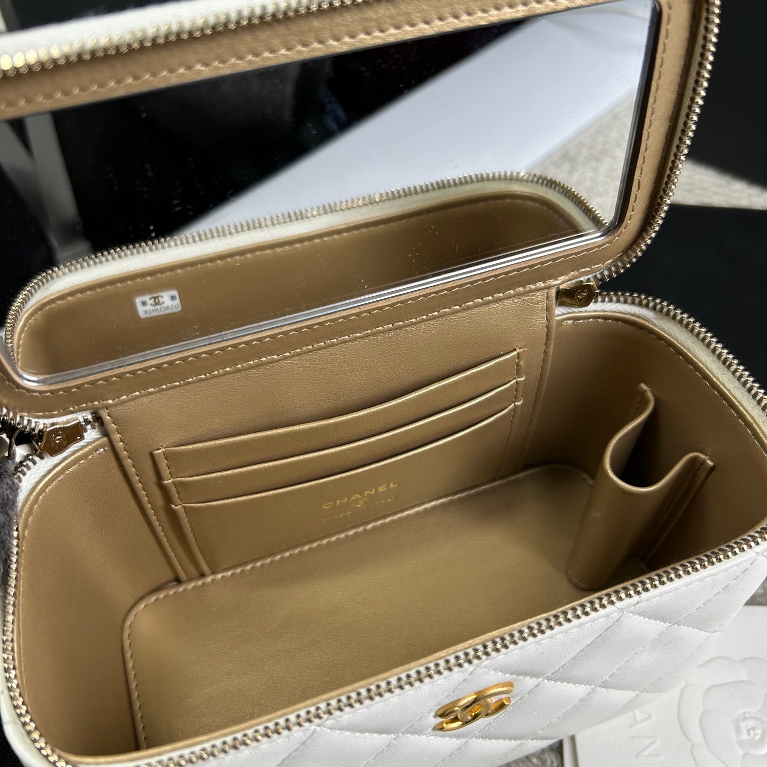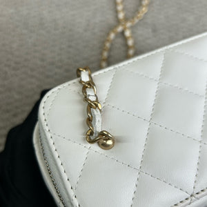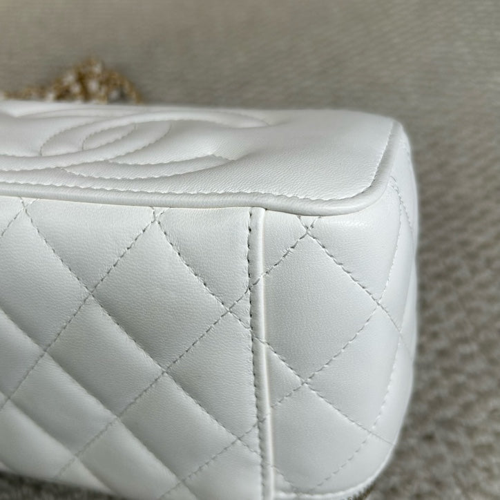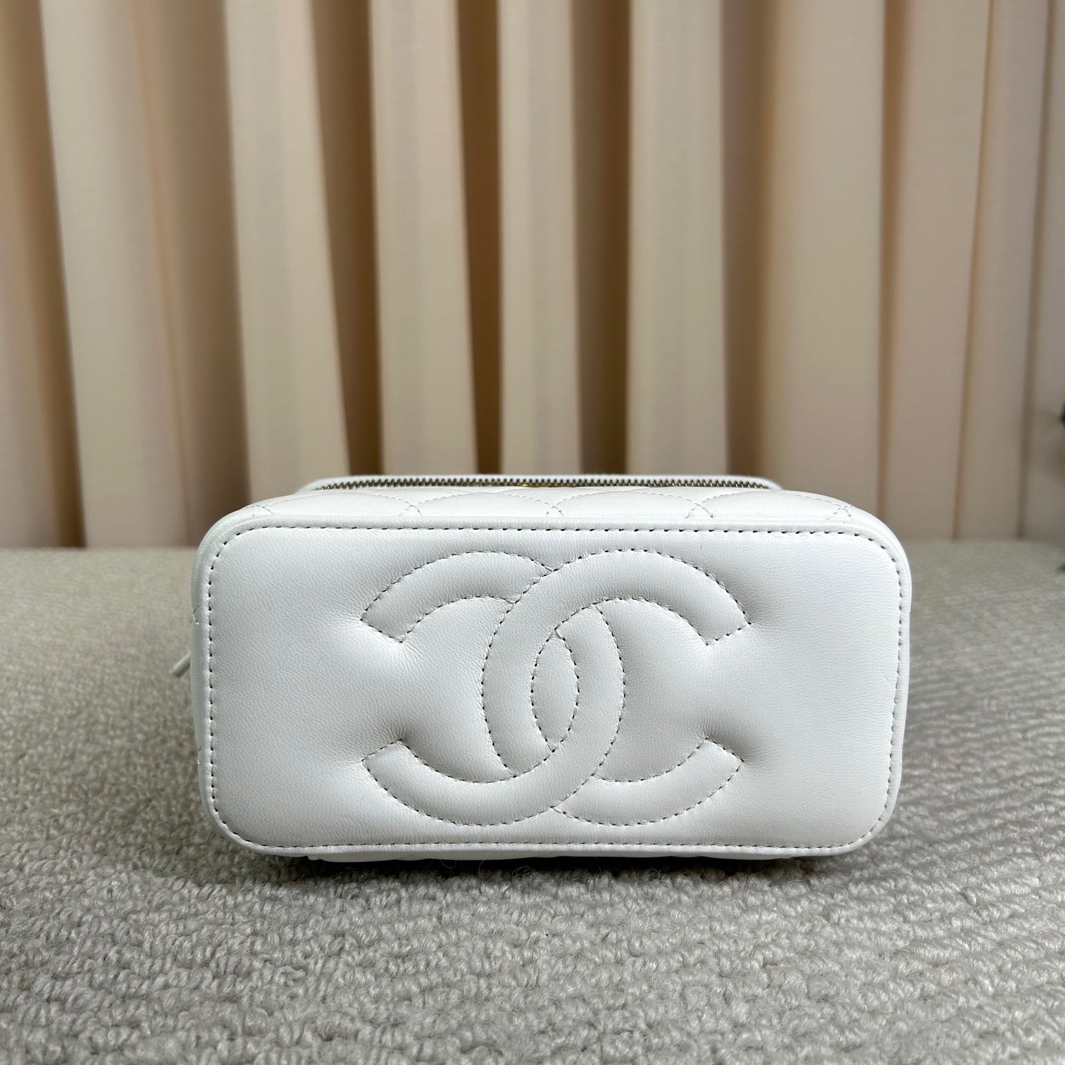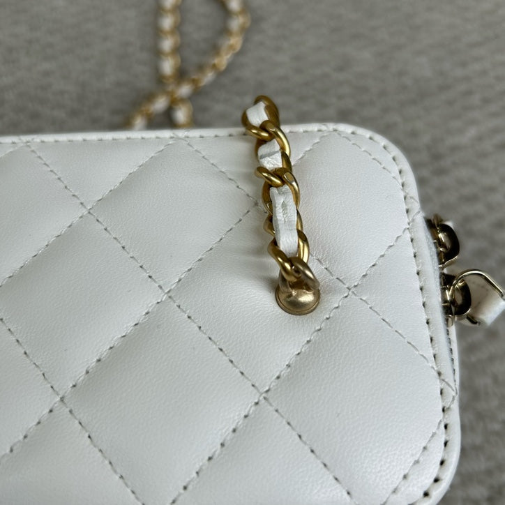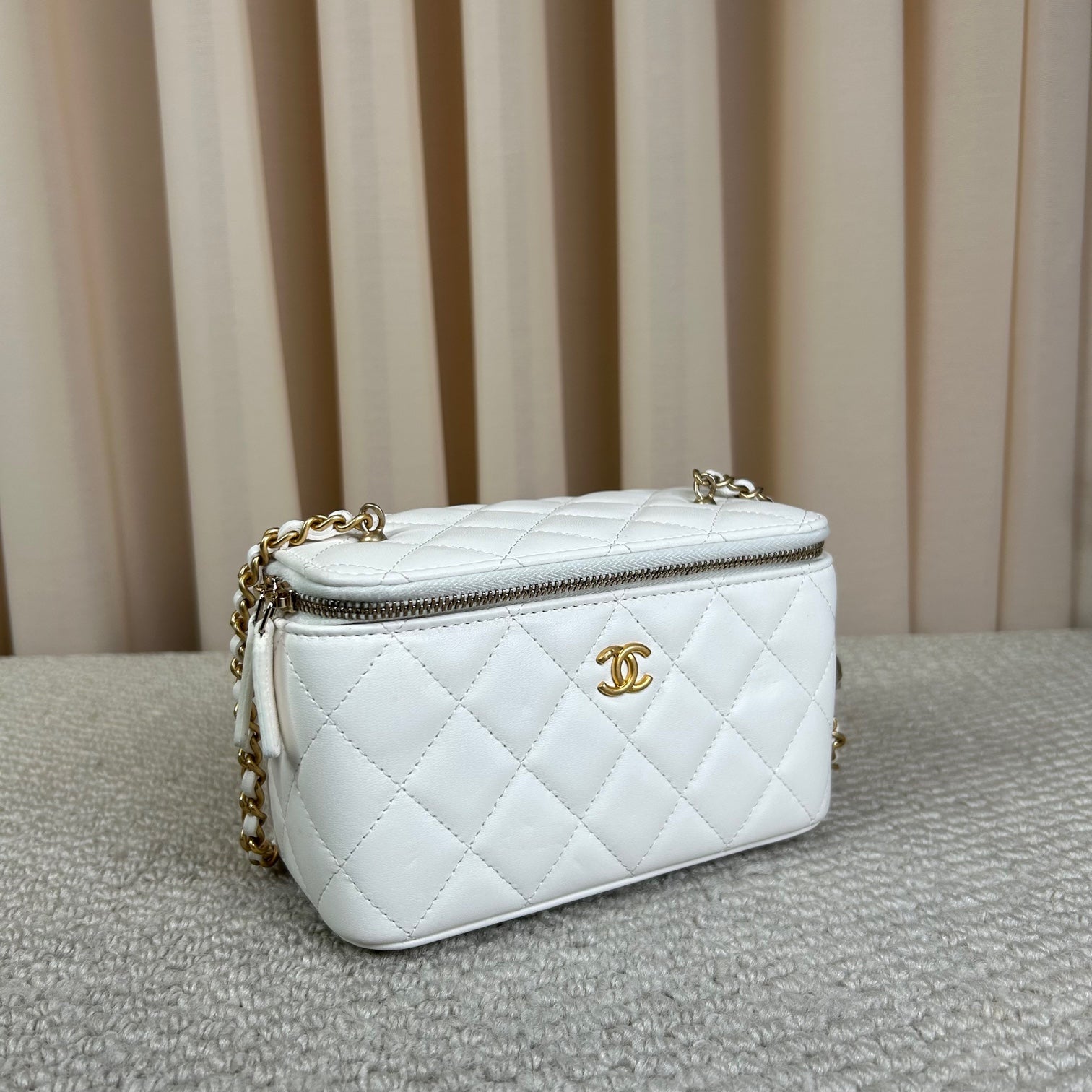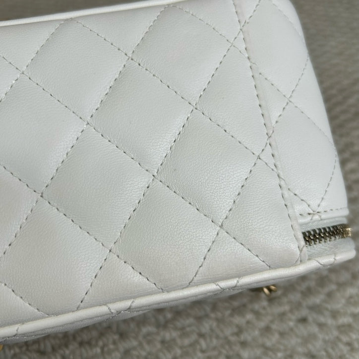 Authentic Pre-owned Chanel White Vanity Case with Gold Ball Chain Bag