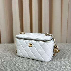 Chanel White Vanity Case with Gold Ball Chain Bag