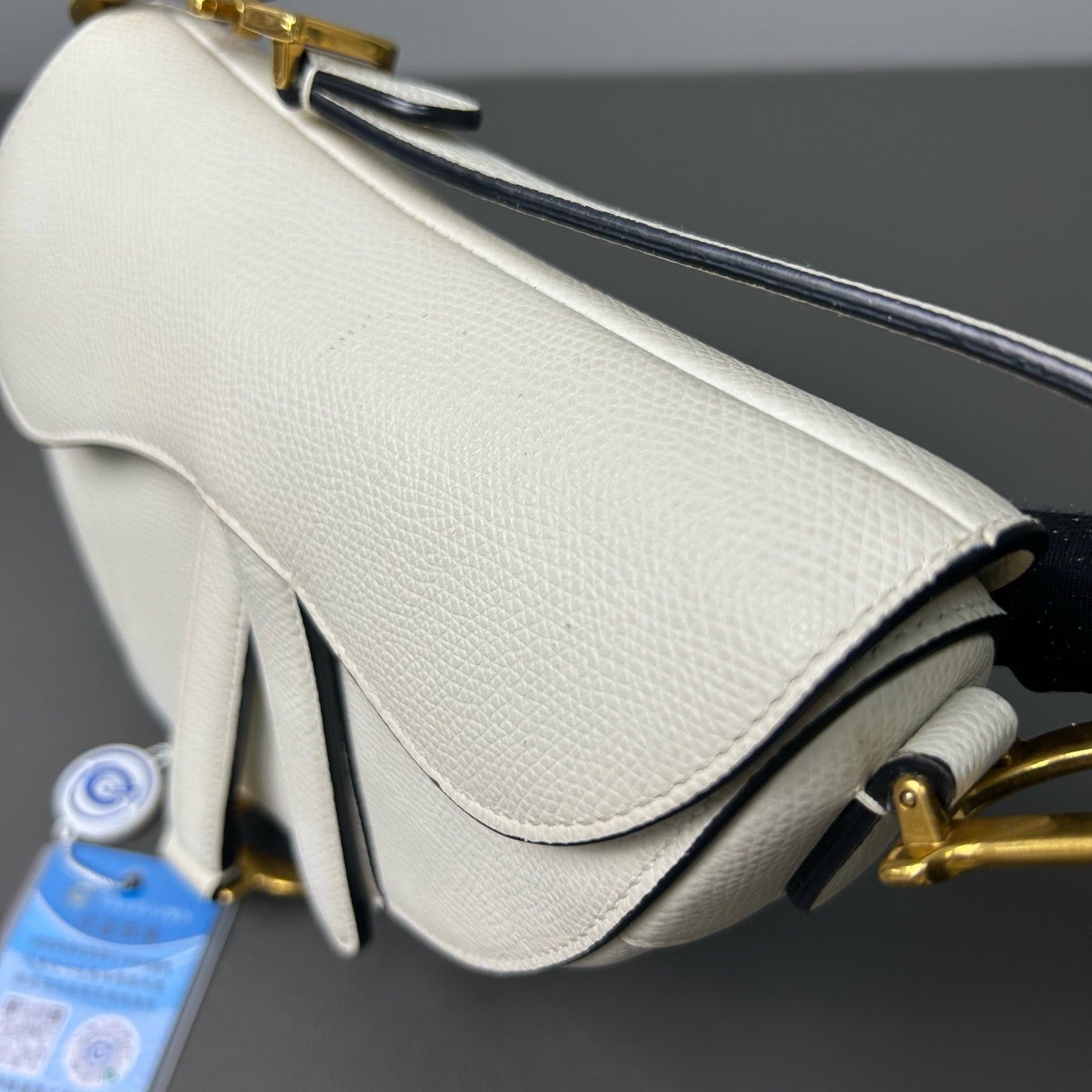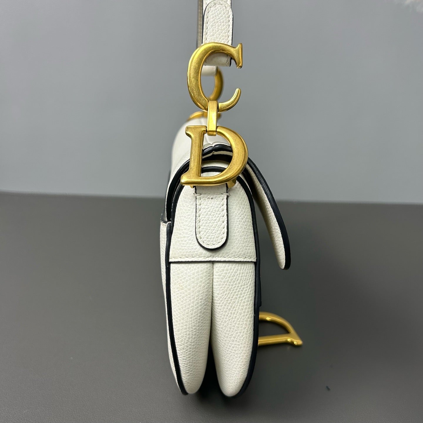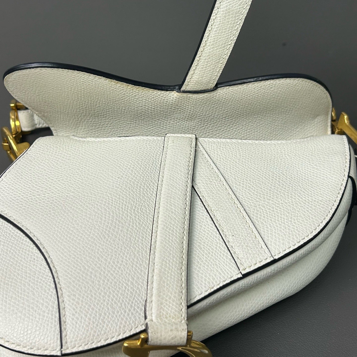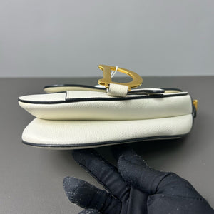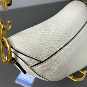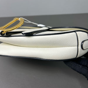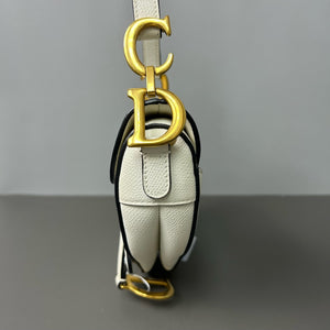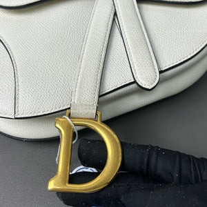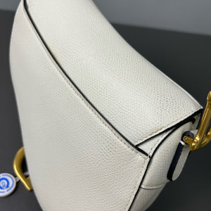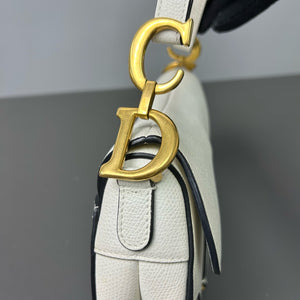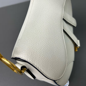 Authentic Pre-owned Christian Dior Saddle Medium White Grained Leather Shoulder Bag