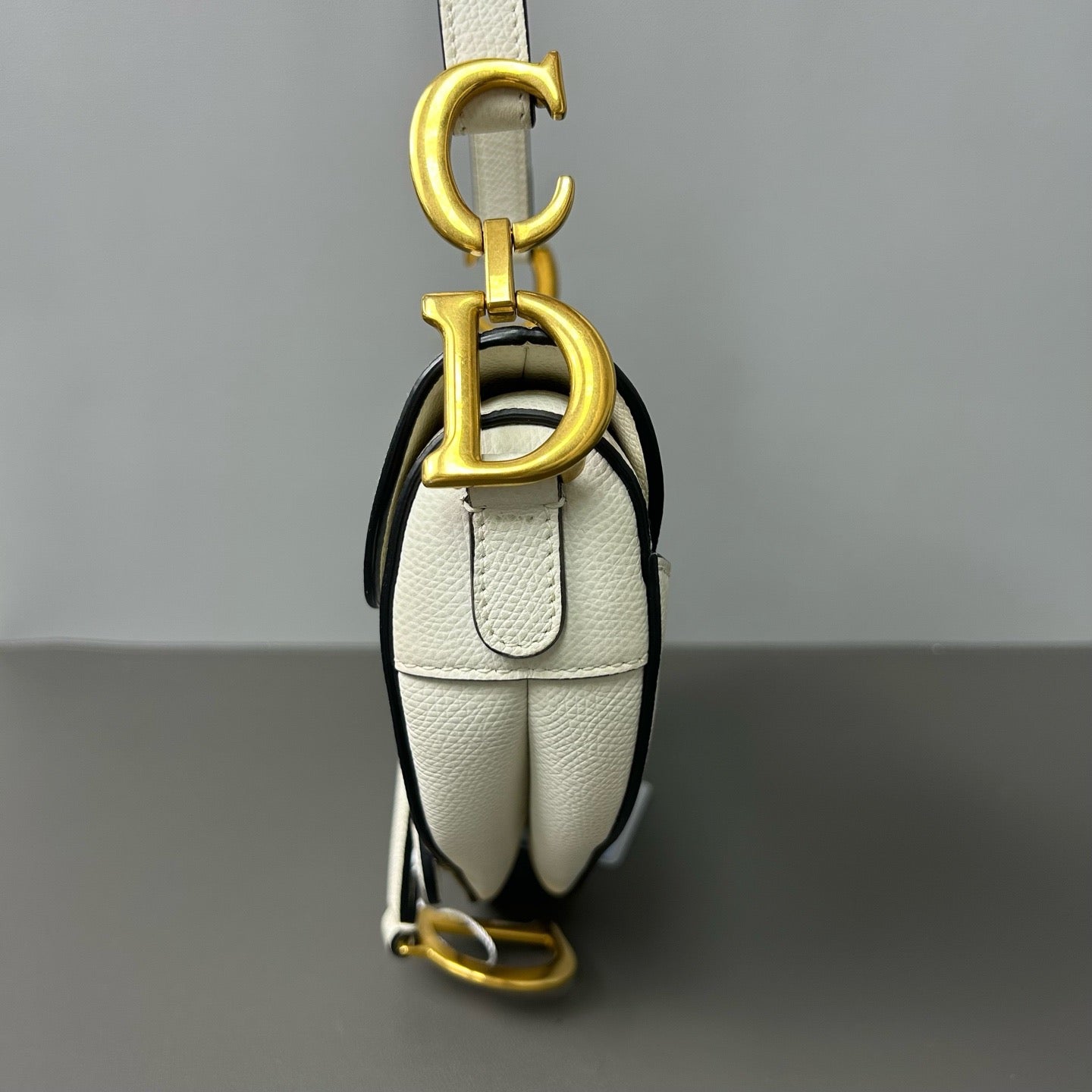 • Feature: Iconic D-shaped charm, curved saddle silhouette, detachable shoulder strap