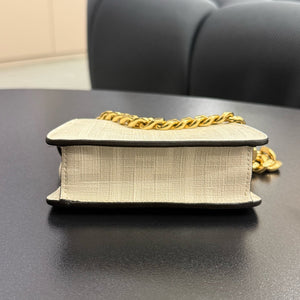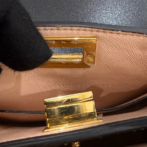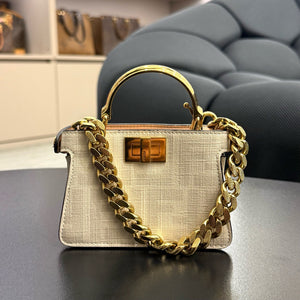 A bold artistic expression in Fendi’s Peekaboo legacy, this micro bag features multi-color leather with a striking art print, blending high fashion with contemporary artistry. The signature gold-tone metal clasp (a hallmark of Fendi’s craftsmanship) and ultra-petite structured silhouette showcase the brand’s commitment to innovation and detail. At 12cm wide, it’s a statement-making micro accessory perfect for elevating avant-garde looks, adding an artistic flair to everyday styling, or standing out in luxury collections. The dual carry options (top handle and detachable chain strap) offer versatile styling for any occasion.