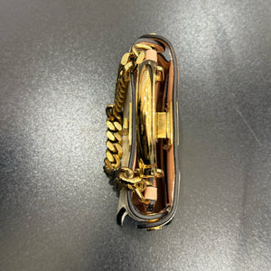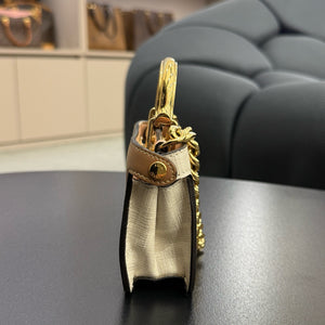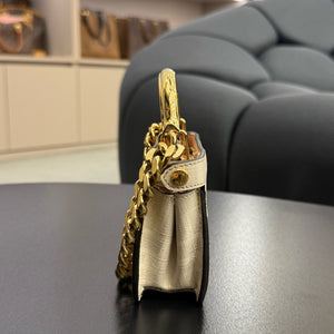 - Hardware: Gold-tone signature clasp, top handle, and detachable chain strap