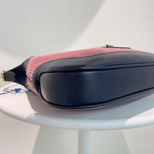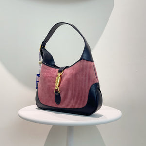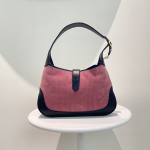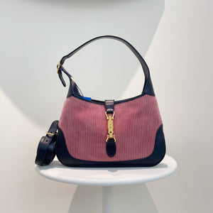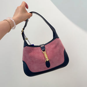 Authentic Gucci Jackie 1961 Small Bag – Pink Corduroy & Black Leather with Iconic Hardware