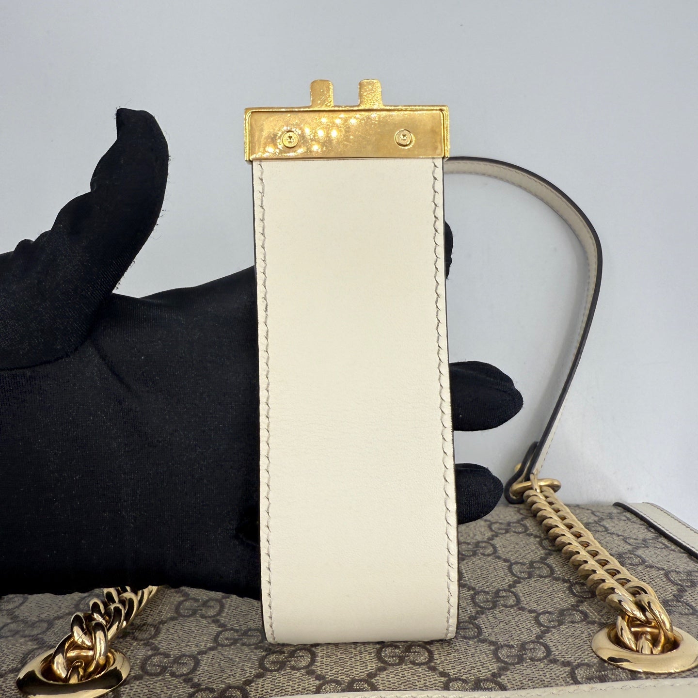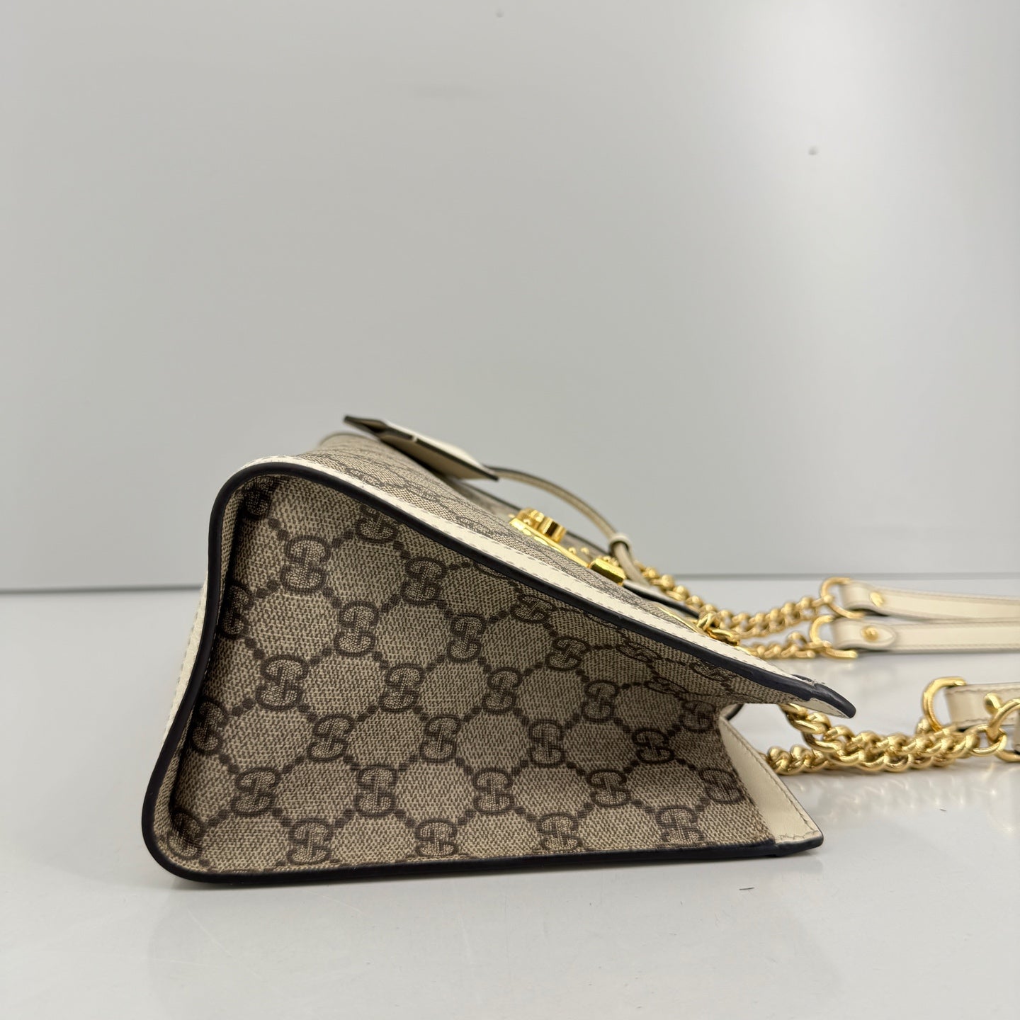 - Feature: Iconic GG monogram pattern, signature gold-tone padlock closure, structured silhouette, versatile chain strap