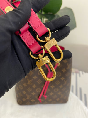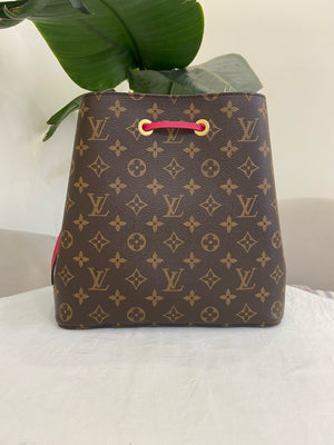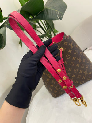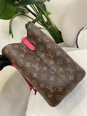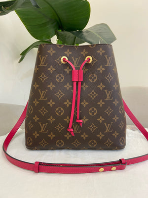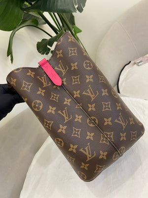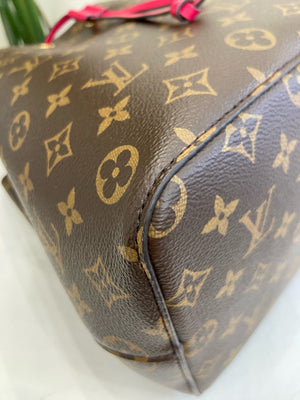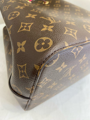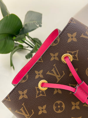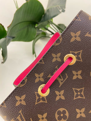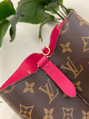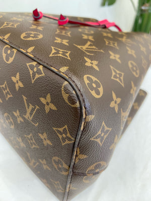 # Authentic Louis Vuitton NéoNoé MM Bucket Bag – Monogram Canvas with Fuchsia Trim (26cm Size)