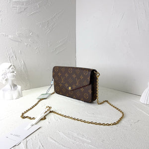 The Louis Vuitton Pochette Félicie is a versatile, compact accessory that embodies the brand’s timeless elegance. Crafted from LV’s iconic Monogram canvas (a signature print since 1896) and finished with polished gold-tone hardware, this sleek envelope-style bag balances classic design with modern functionality. Its streamlined silhouette (without detachable sub-pouches) makes it a minimalist yet stylish choice for everyday outings or evening occasions, fitting small essentials like a phone, cardholder, and lipstick.
