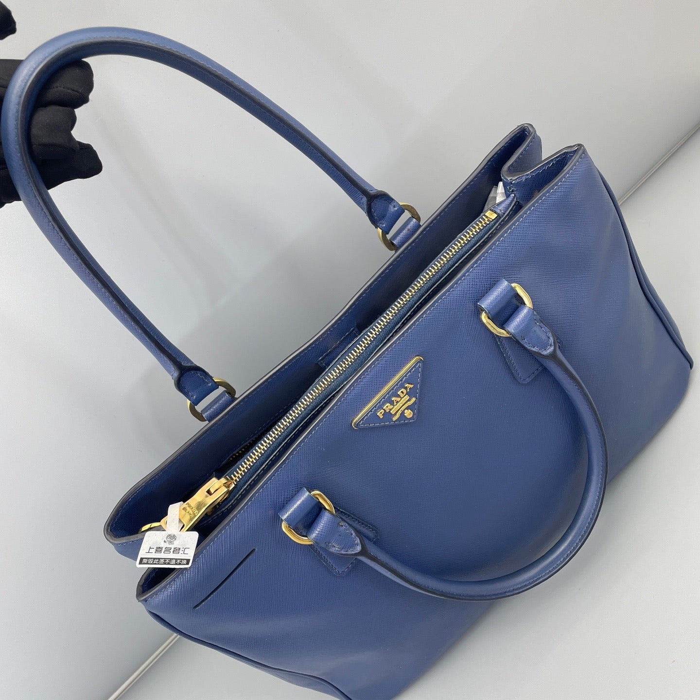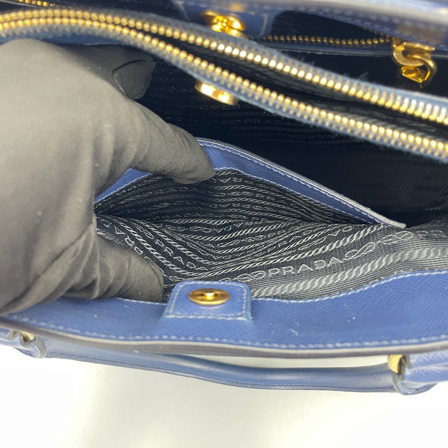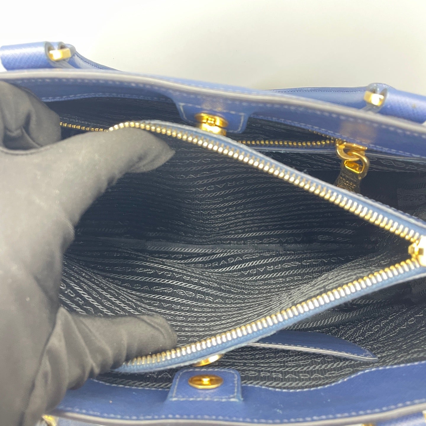 Prada Galleria Large Blue Saffiano Leather Top Handle Tote Bag