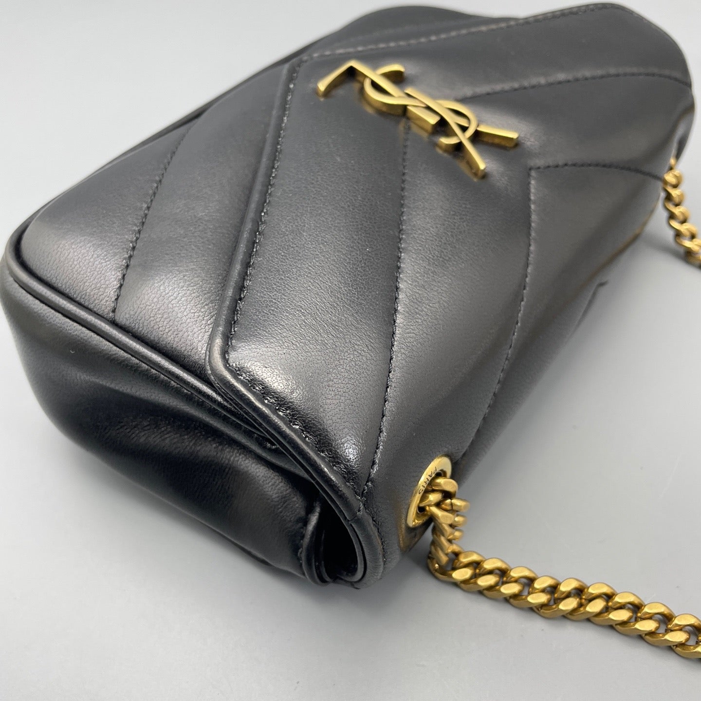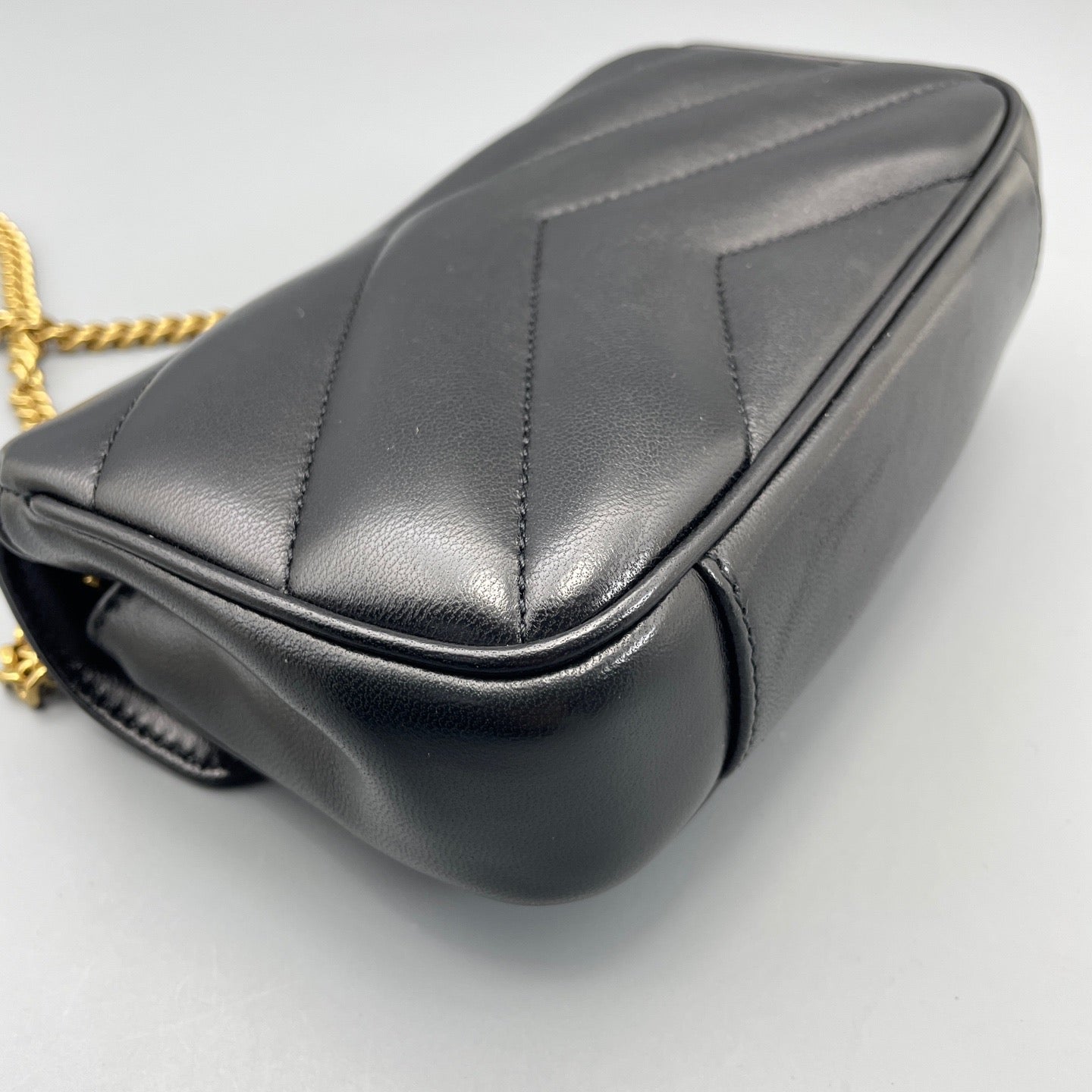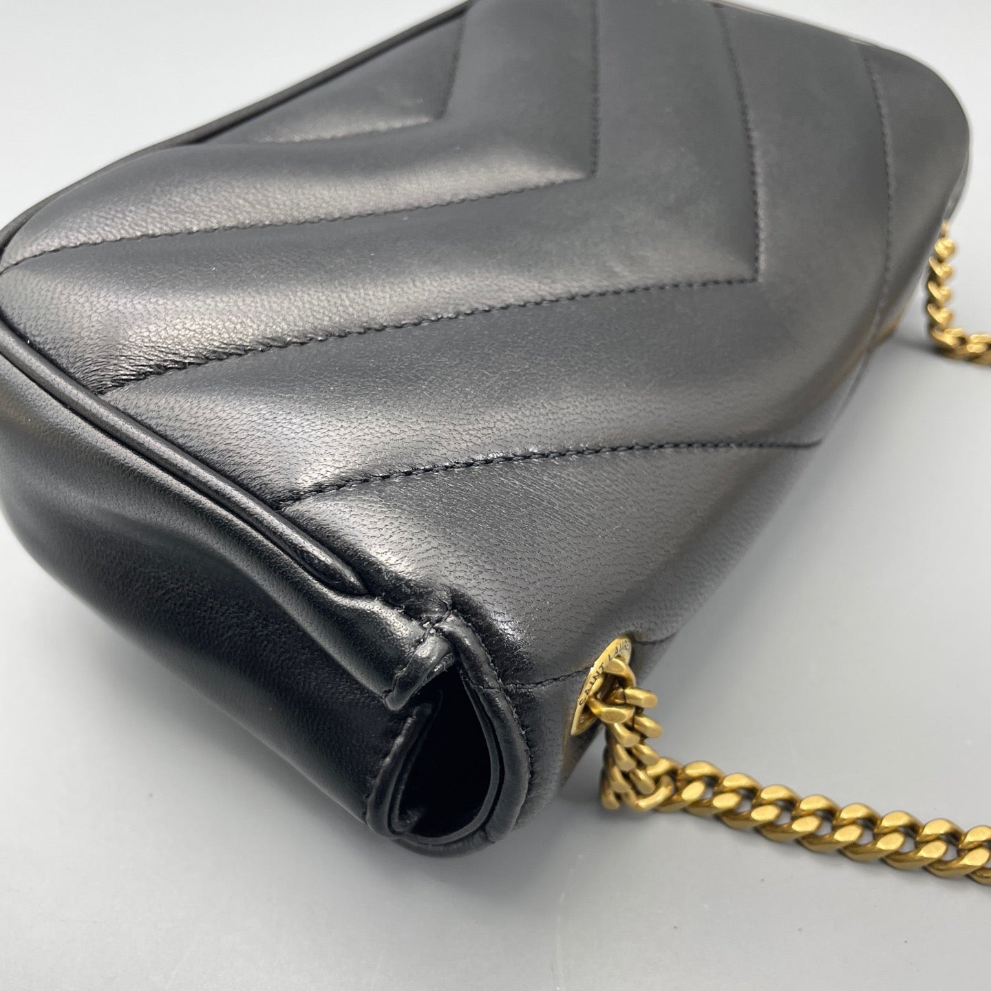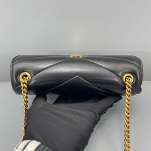 • Feature: Iconic YSL monogram plaque, chevron-quilted puffer design, convertible chain strap