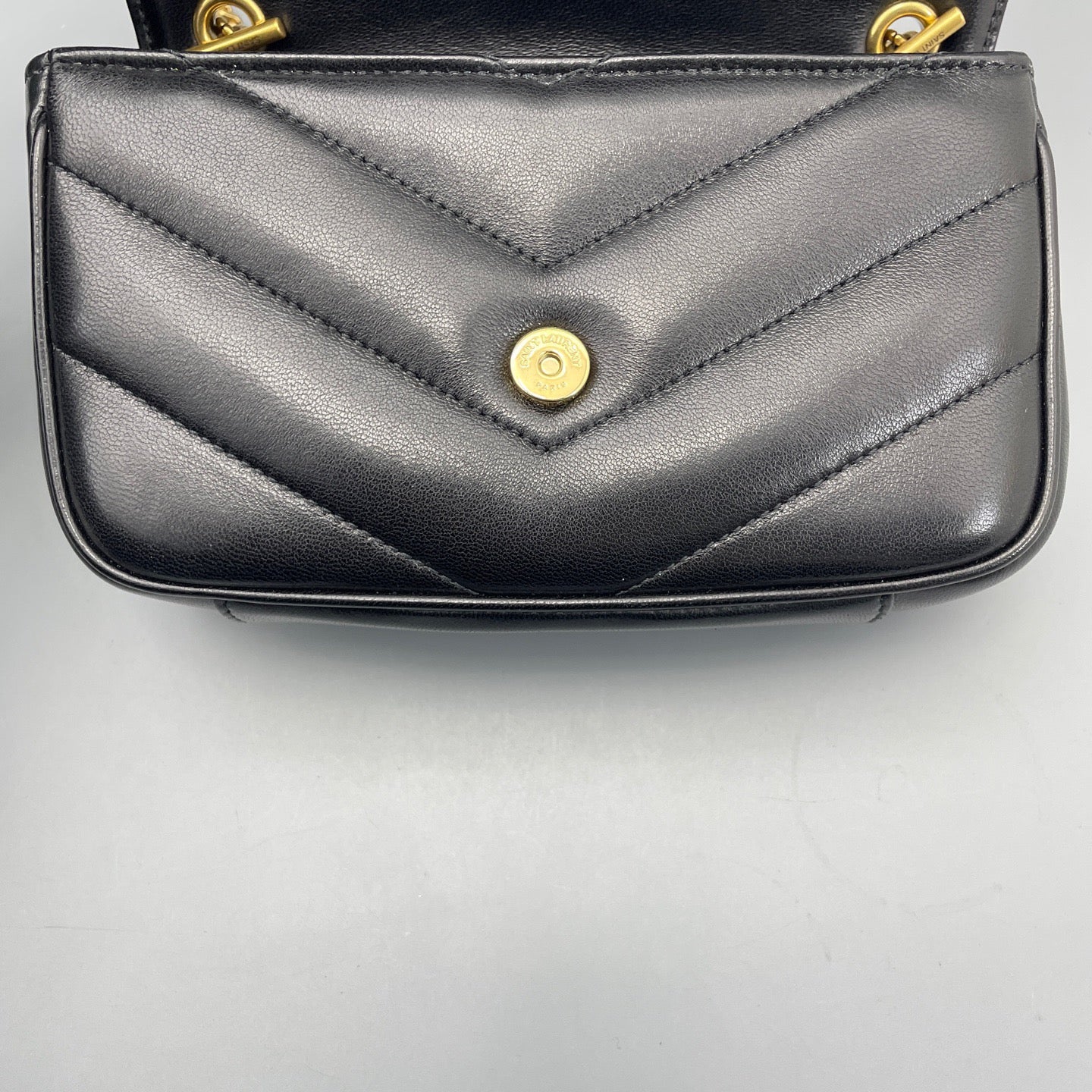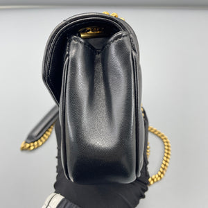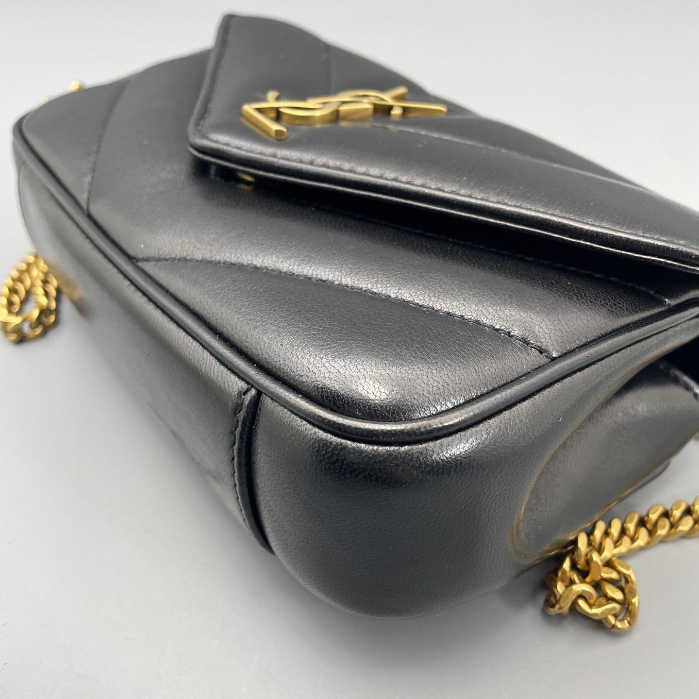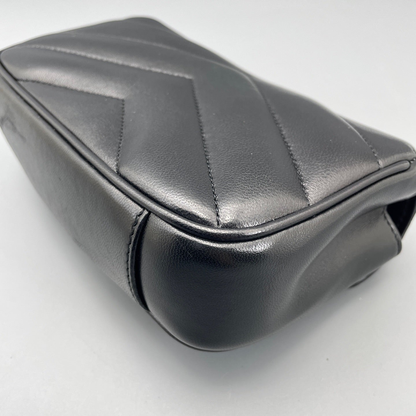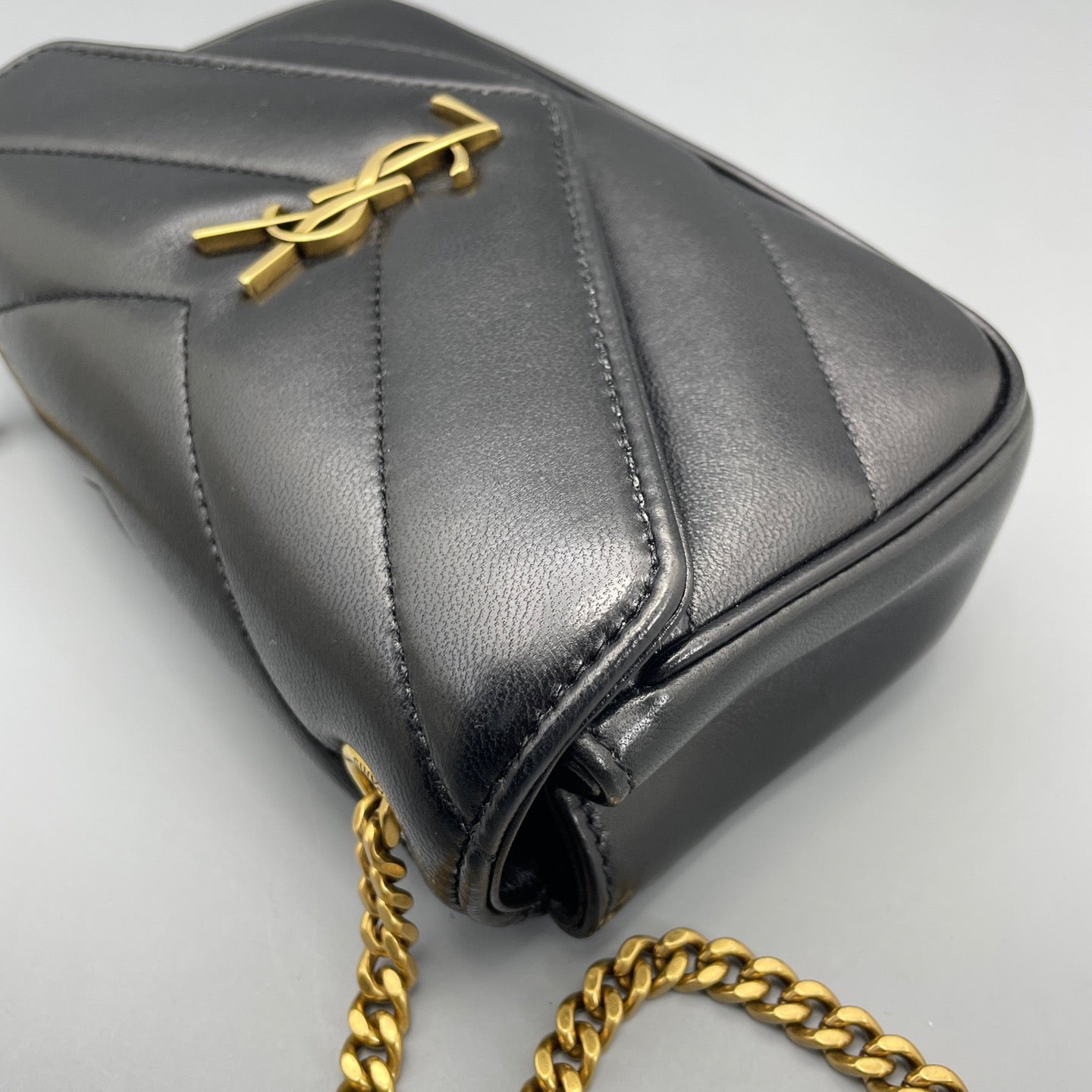 • Feature: Iconic YSL monogram plaque, chevron-quilted puffer design, convertible chain strap