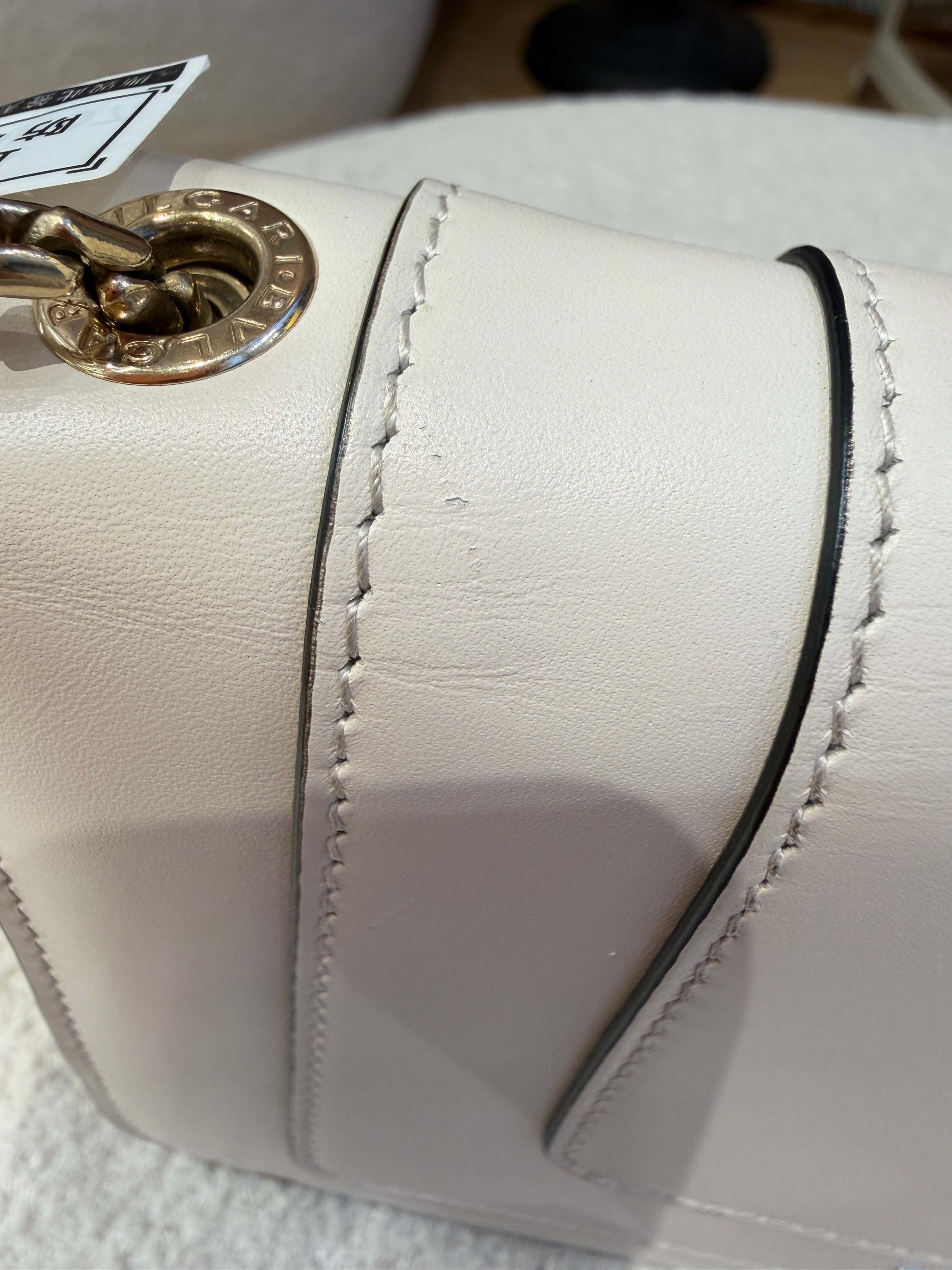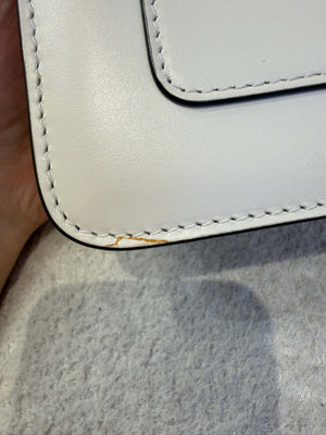 • Cream white calfskin exterior is pristine and well-maintained with minimal signs of wear