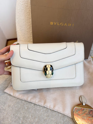 Authentic Pre-owned BVLGARI Serpenti Forever White Calfskin Silver HW Crossbody Bag