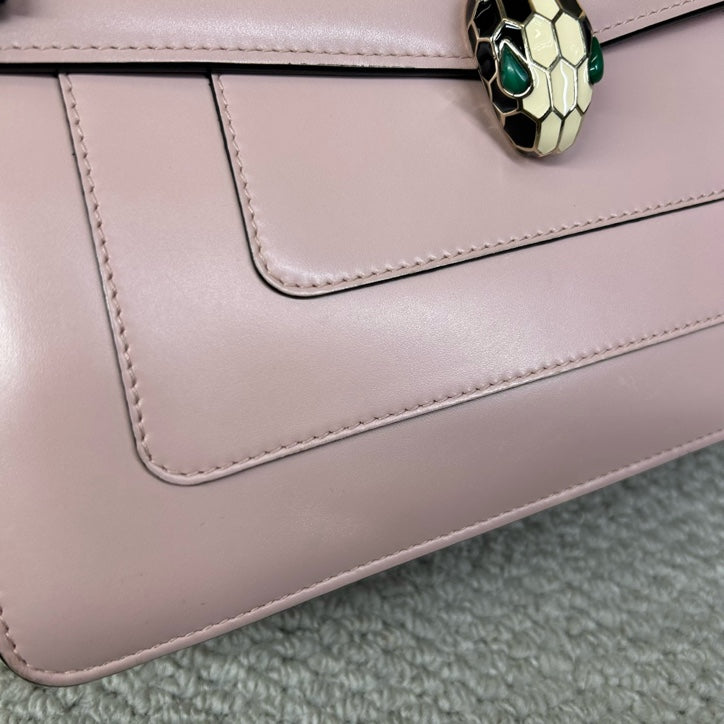 ⨠Authentic Pre-owned Bvlgari Light Pink Calfskin Serpenti Forever Medium Chain Shoulder Bag