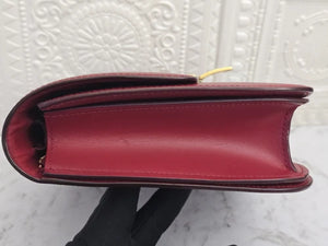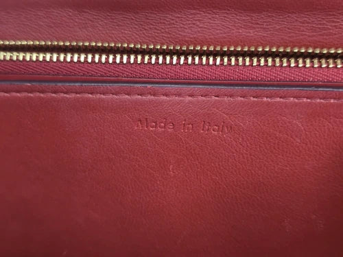 • Red smooth calfskin leather exterior is clean and supple with only very minor surface scratches