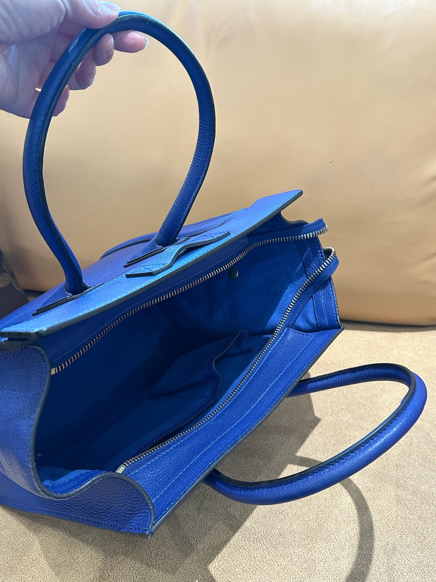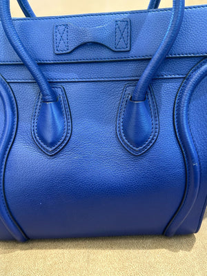 Authentic Pre-owned Celine Luggage Micro Electric Blue Grained Leather Tote Bag