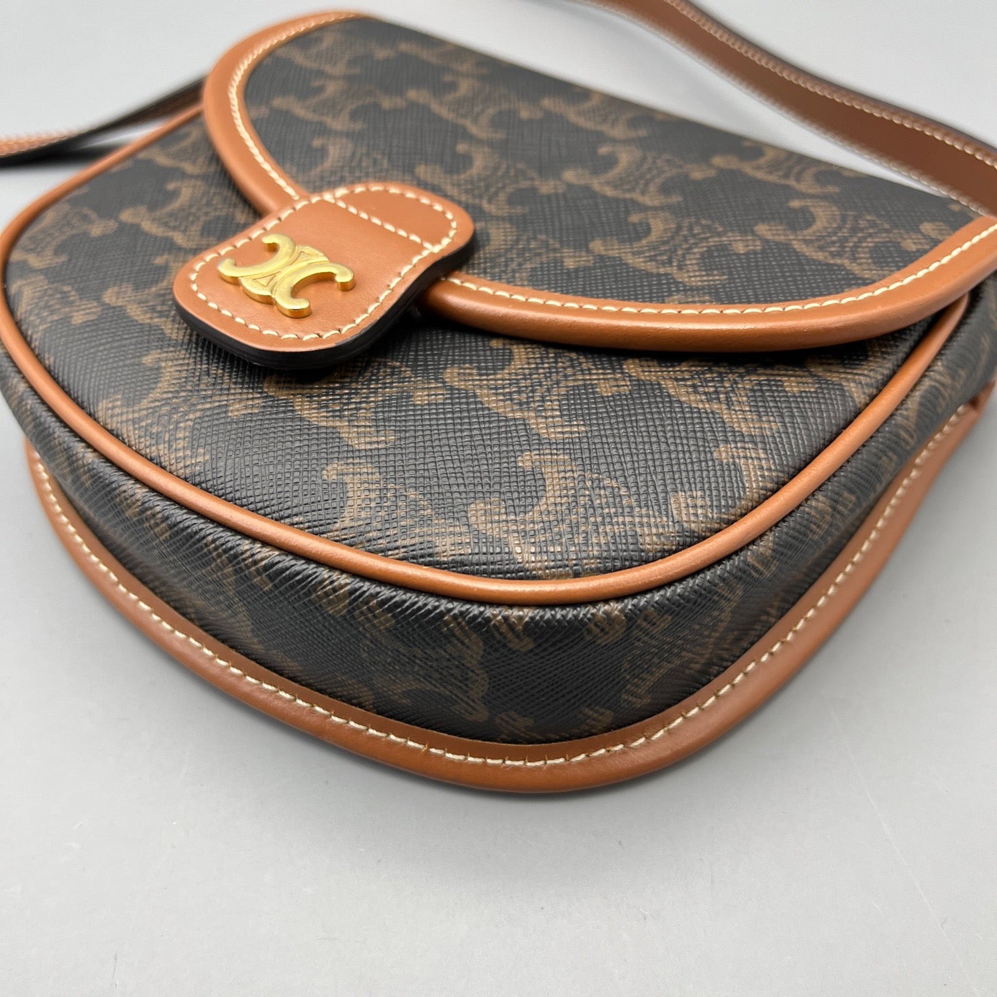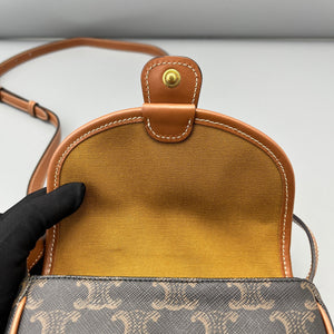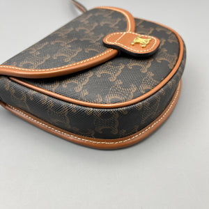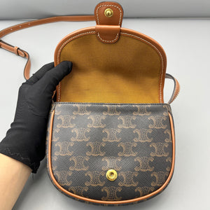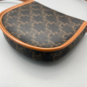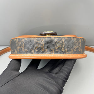 Celine Mini Triomphe Saddle Bag Triomphe Canvas Tan Leather Bag