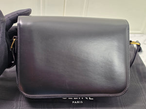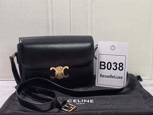 - Feature: Timeless structured silhouette, signature Triomphe logo closure, adjustable detachable shoulder strap, smooth shiny calfskin finish, classic Celine Paris craftsmanship