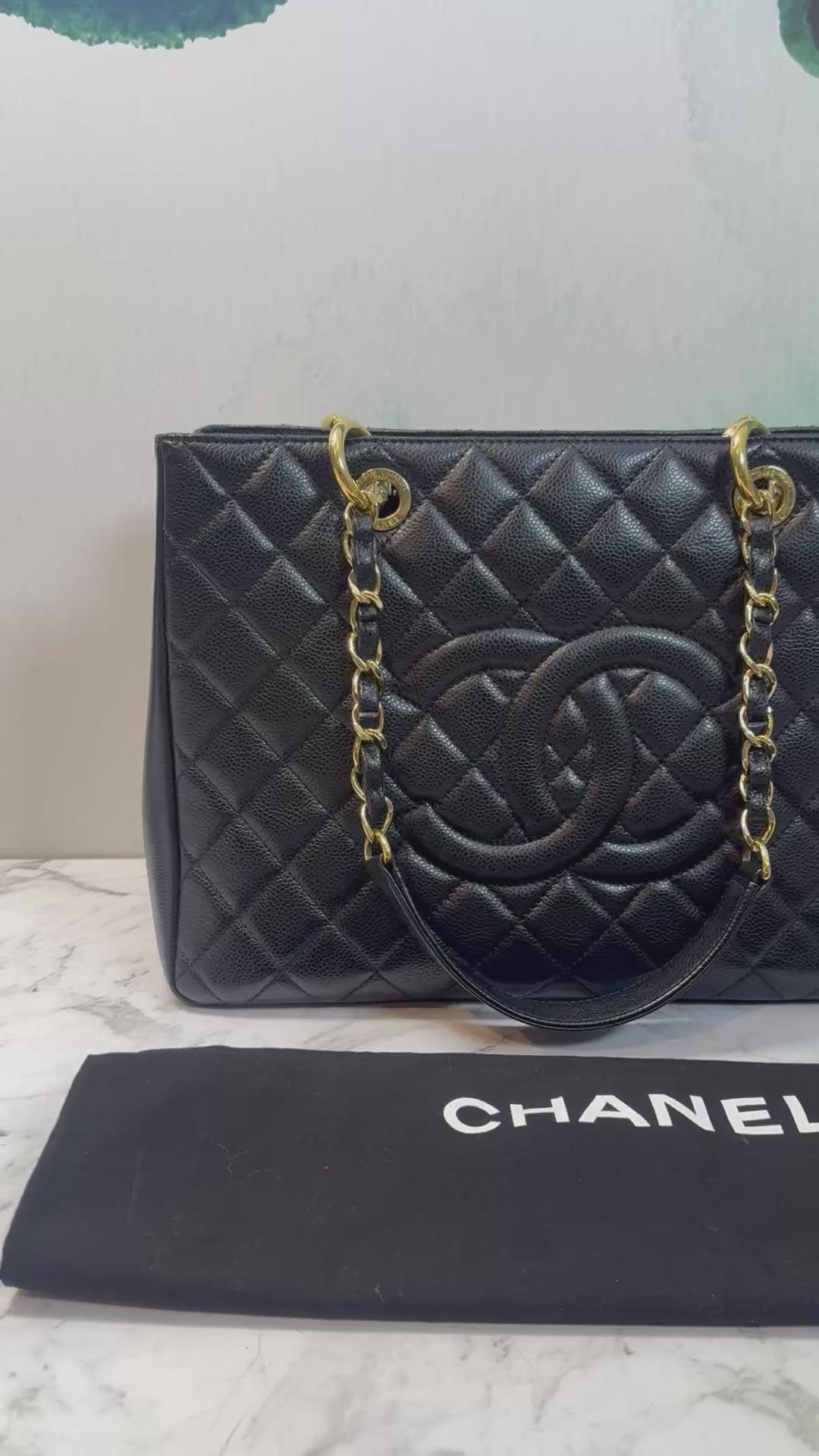 Chanel GST Grand Shopping Tote Beige Caviar Leather Gold Hardware Bag