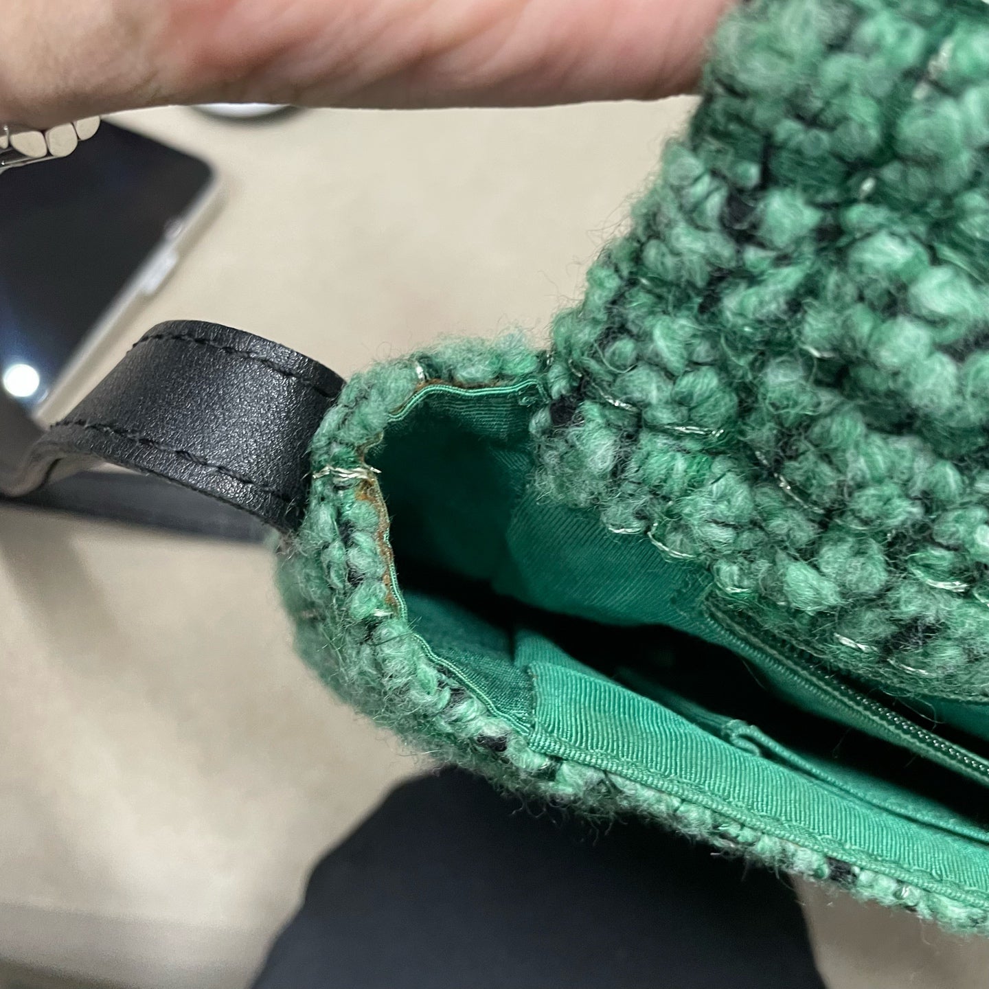 Authentic Pre-owned Chanel Green Tweed Medium Shoulder Bag