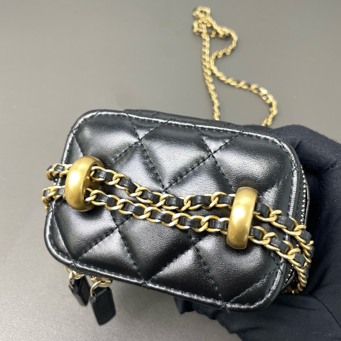 Authentic Pre-owned Chanel Black Quilted Lambskin Leather Vanity Case Crossbody Bag