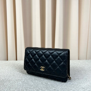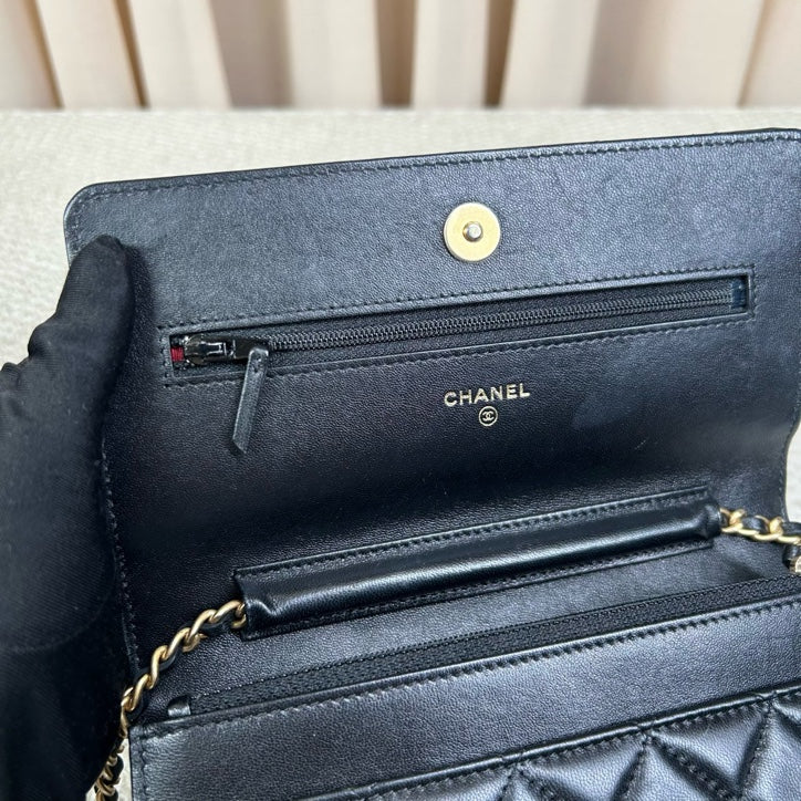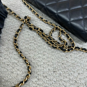 Authentic Chanel Classic Wallet on Chain WOC Black Lambskin Gold Hardware