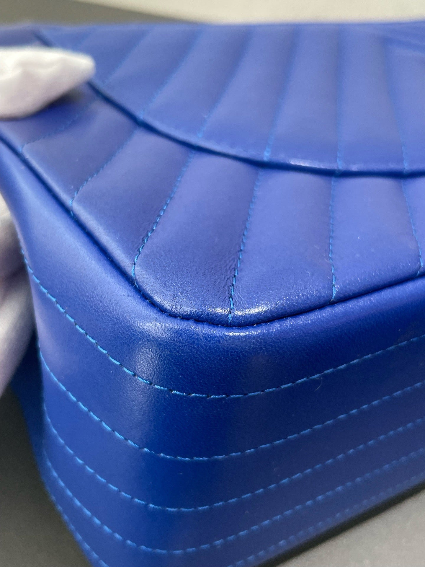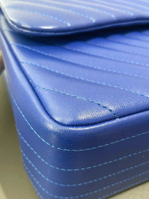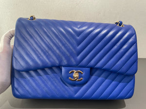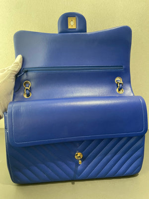 Authentic Pre-owned Chanel Jumbo Blue Chevron Leather Flap Bag