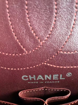 - Interior: Clean burgundy leather lining, no stains, odors, or peeling; clear "CHANEL MADE IN ITALY" stamp visible.