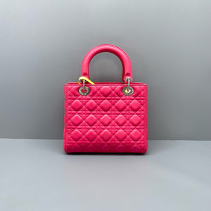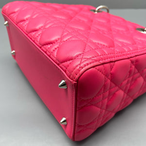 ✨ Authentic Pre-owned Christian Dior Hot Pink Cannage Lambskin Lady Dior Medium Tote Bag