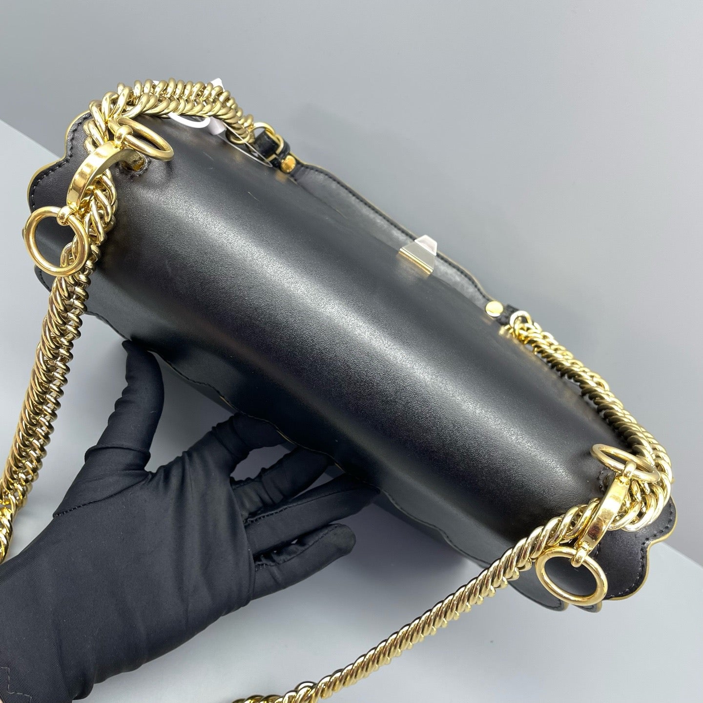• Strap: Detachable adjustable gold-tone chain shoulder strap + detachable adjustable leather shoulder strap