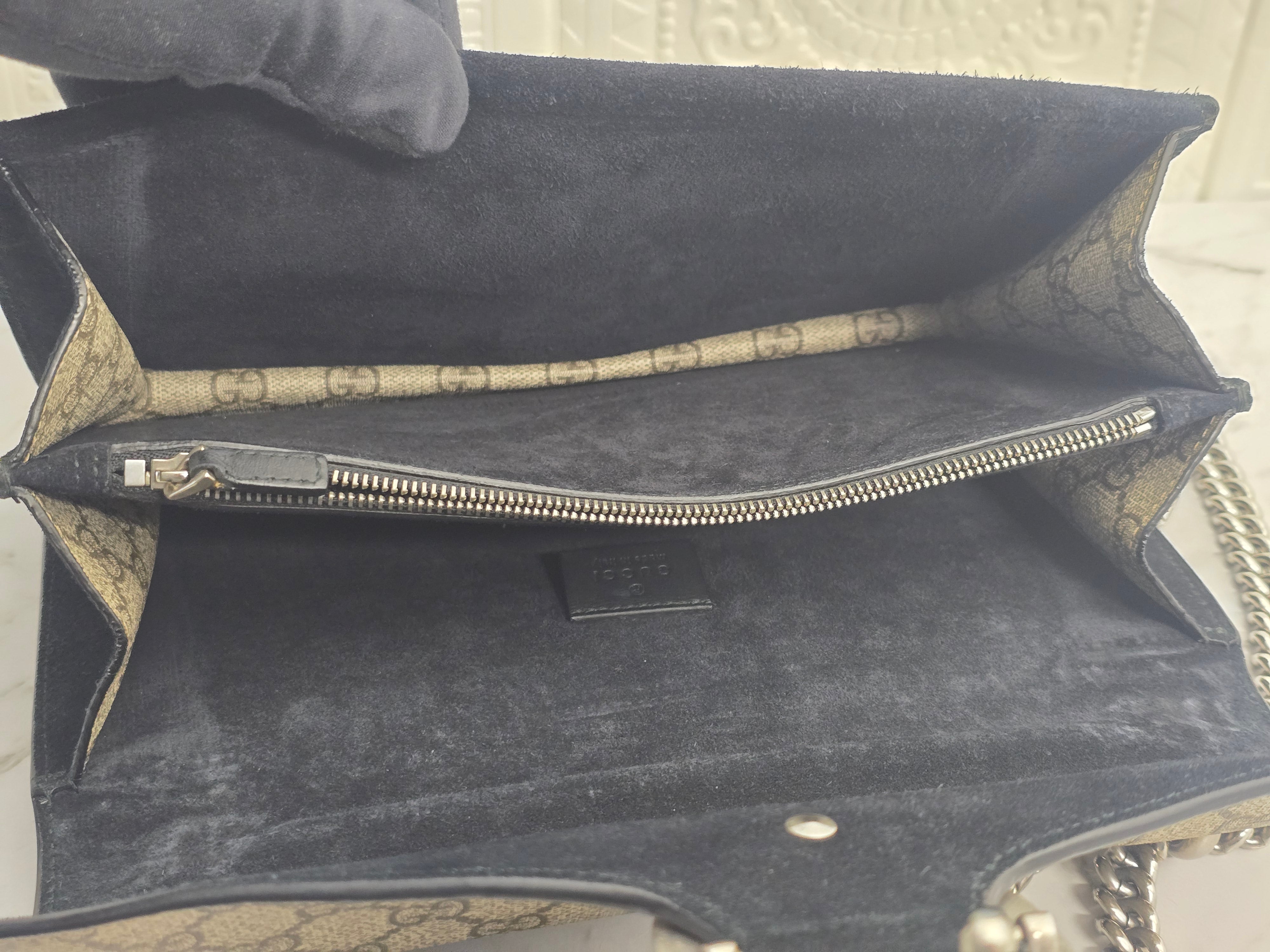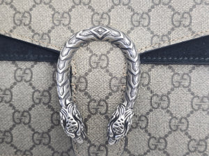 Authentic Pre-owned Gucci Dionysus Medium GG Supreme Canvas Black Suede Silver Hardware Shoulder Bag