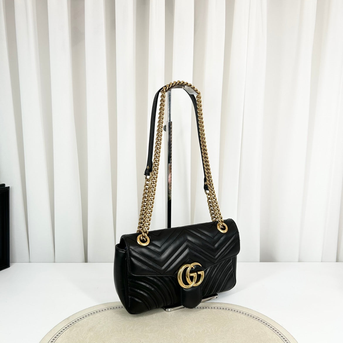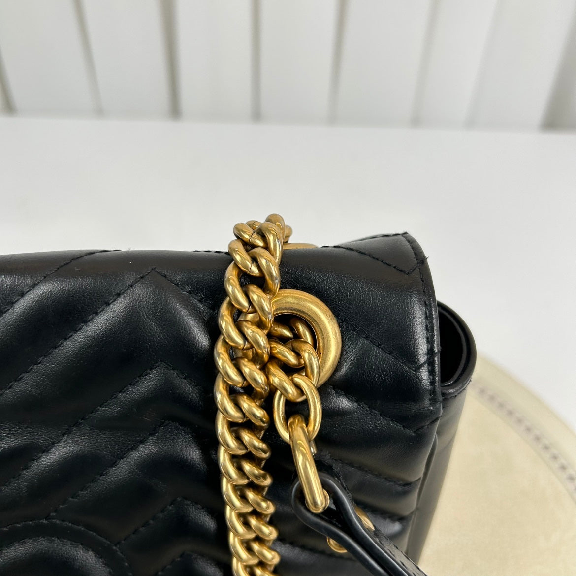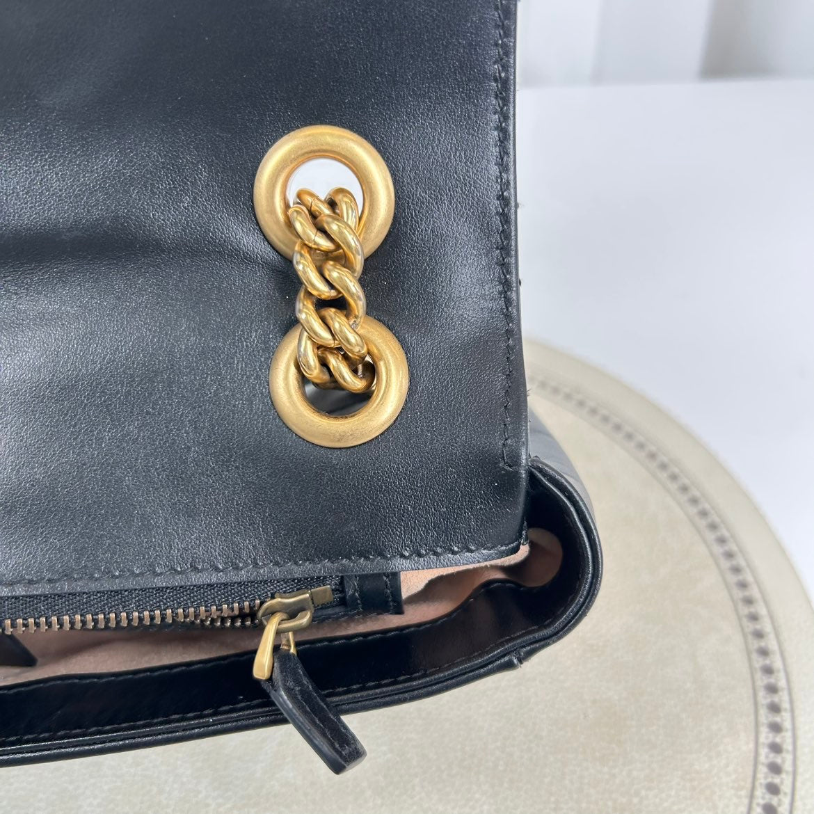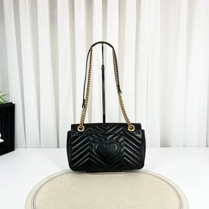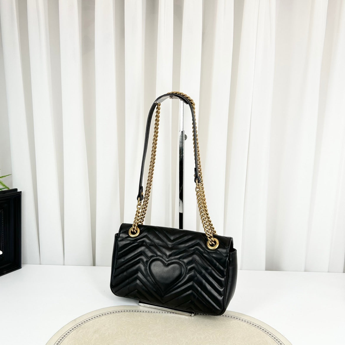 • Strap: Chain strap with leather shoulder guard — can be worn single or crossbody