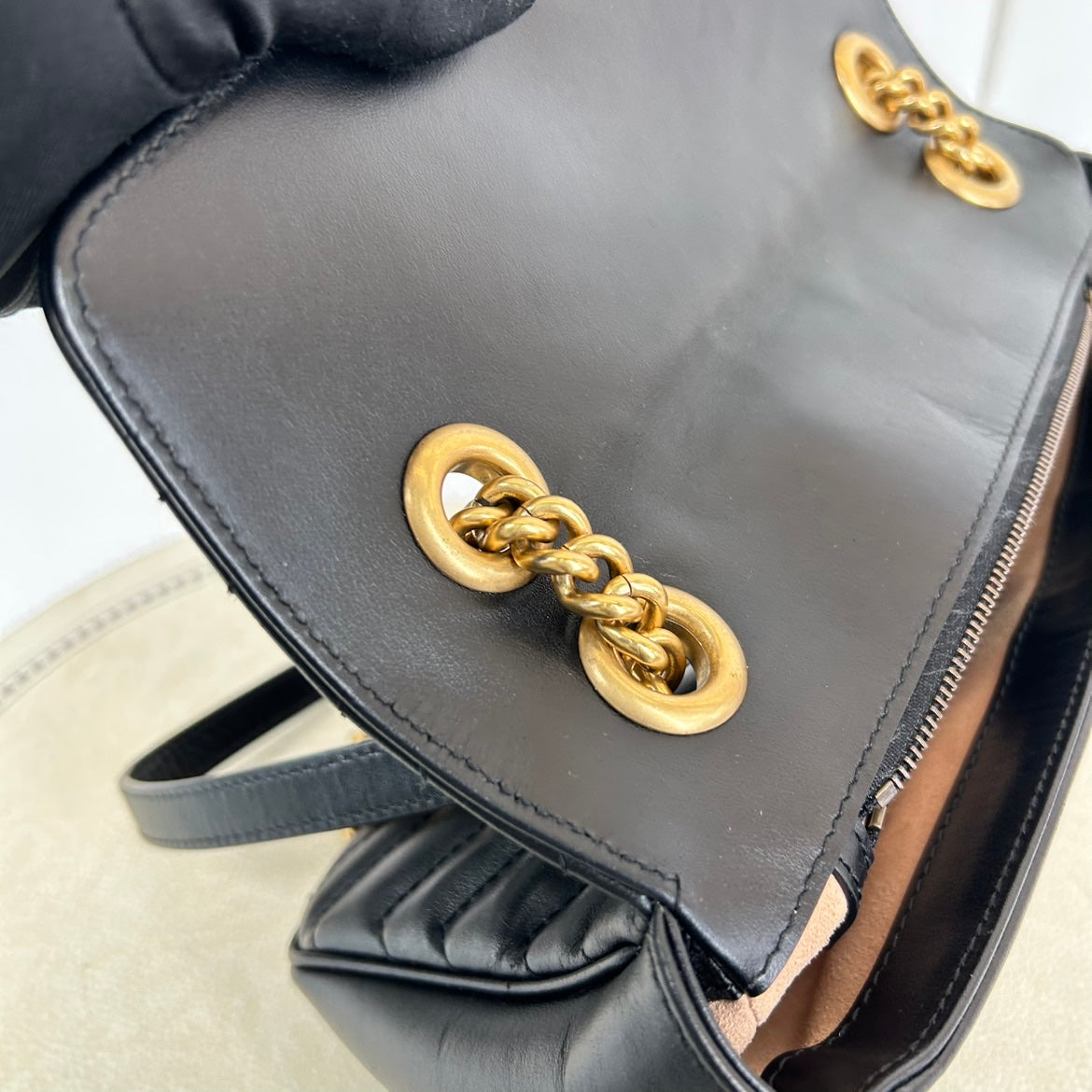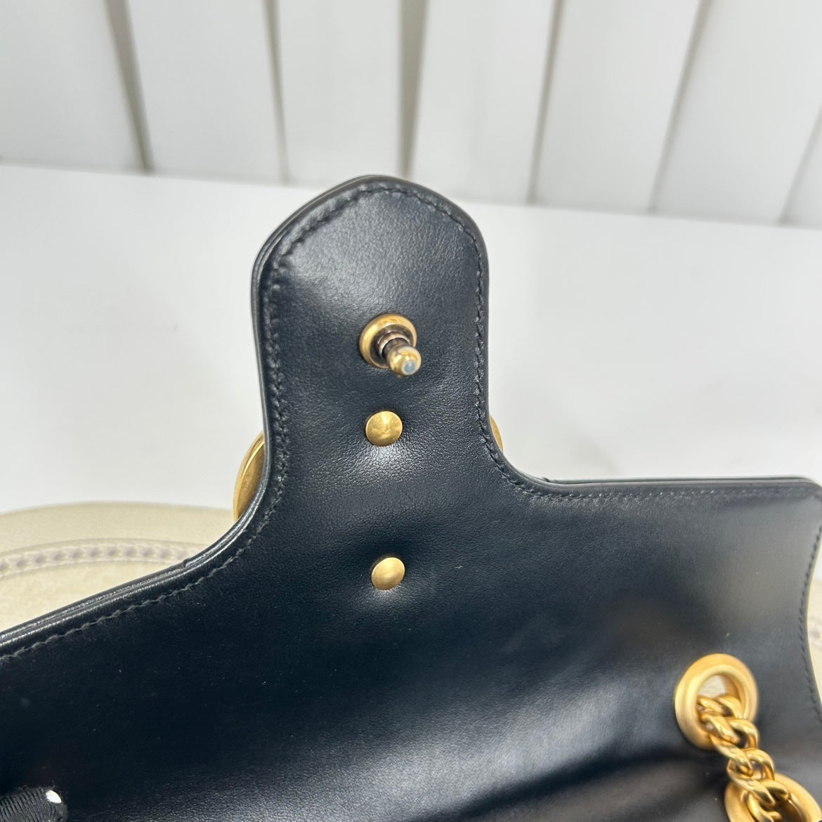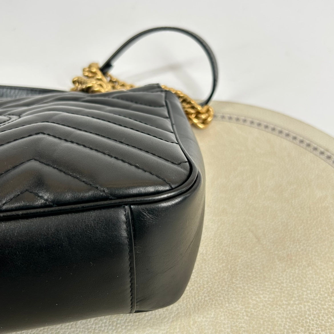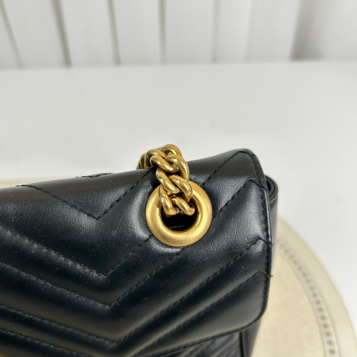 • Strap: Chain strap with leather shoulder guard — can be worn single or crossbody