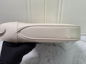 - Exterior: Crisp smooth white leather with no scratches, scuffs, rips, or discoloration. Leather retains its original soft, supple texture and glossy finish.