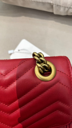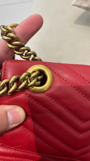 Authentic Pre-owned Gucci Marmont Medium 30cm Red Quilted Leather Gold Hardware Crossbody Bag