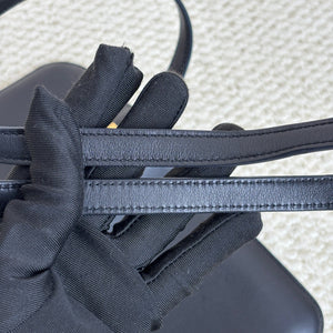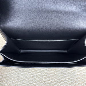 • Features: Iconic H-shaped clasp, adjustable leather crossbody strap, flat structured silhouette, dual interior compartments