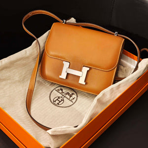 Authentic Pre-owned Hermes Constance Mini Gold Barenia Leather Crossbody Bag