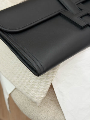 Authentic Pre-owned Hermès Jige Elan Black Swift Leather Clutch