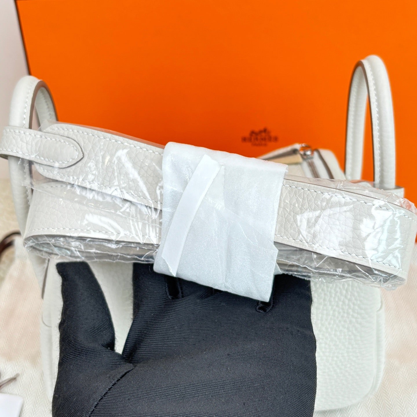 Authentic Pre-owned Hermès Mini Lindy 19 Craie Clemence Leather Silver Hardware (K Stamp) Full Set