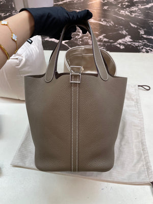 Hermès Picotin Lock 18 Etoupe Togo Leather Palladium Hardware Bag