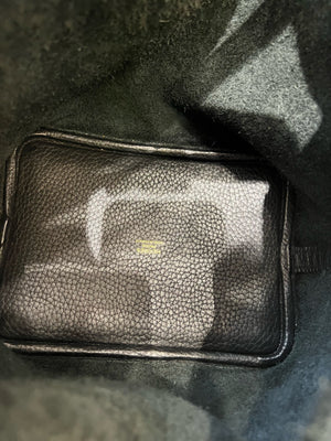 • Feature: Iconic bucket silhouette, two short top handles, drawstring closure, clochette with lock