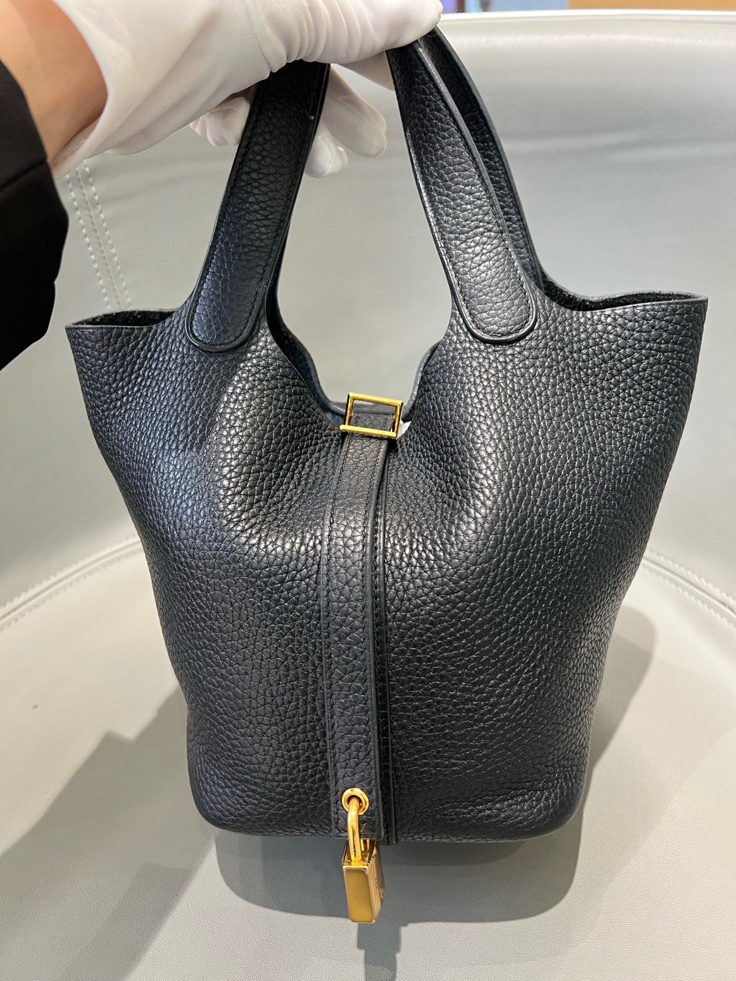 Hermès Picotin Lock 18 Black Clemence Leather Gold-Tone Hardware Bag