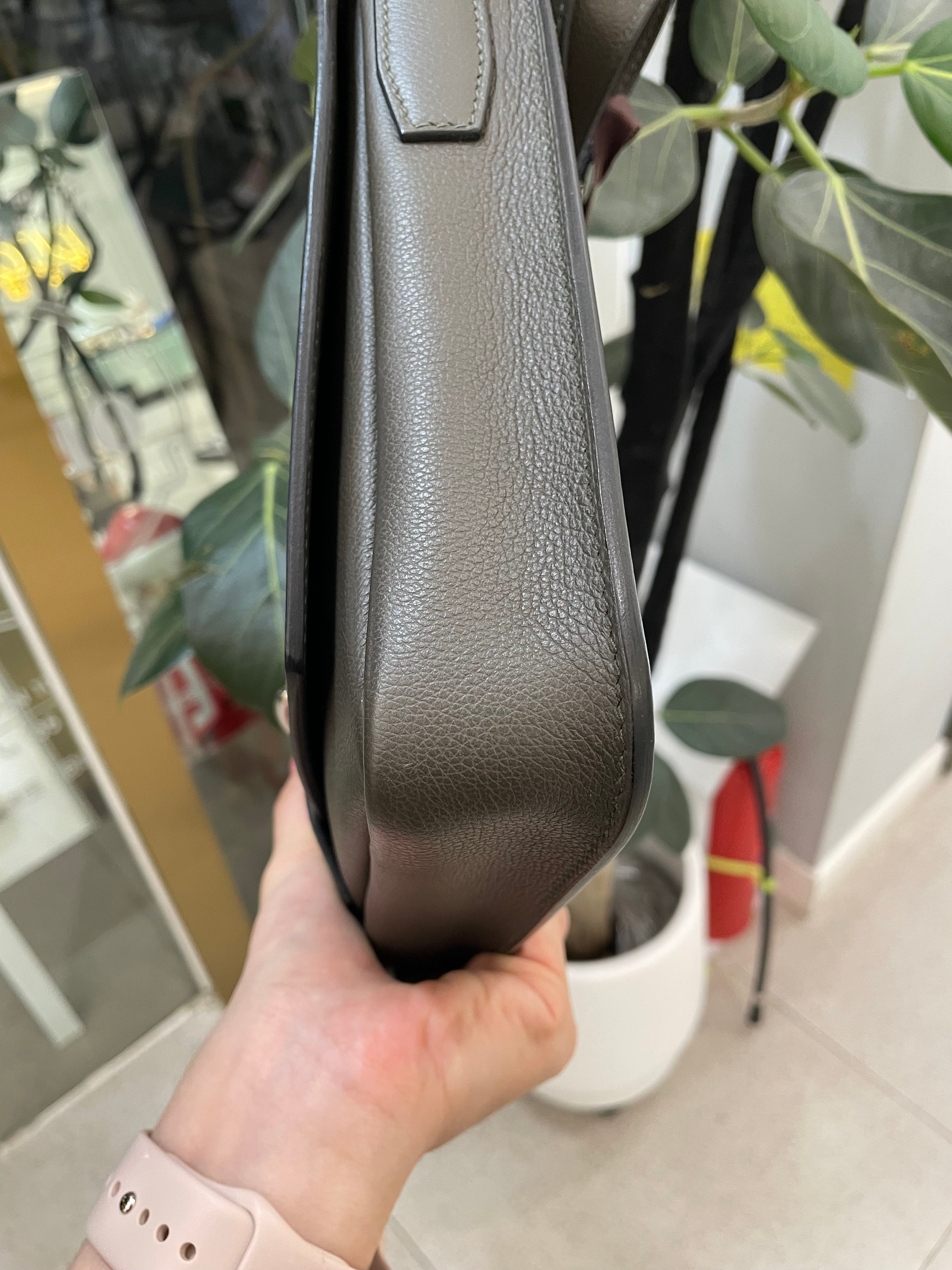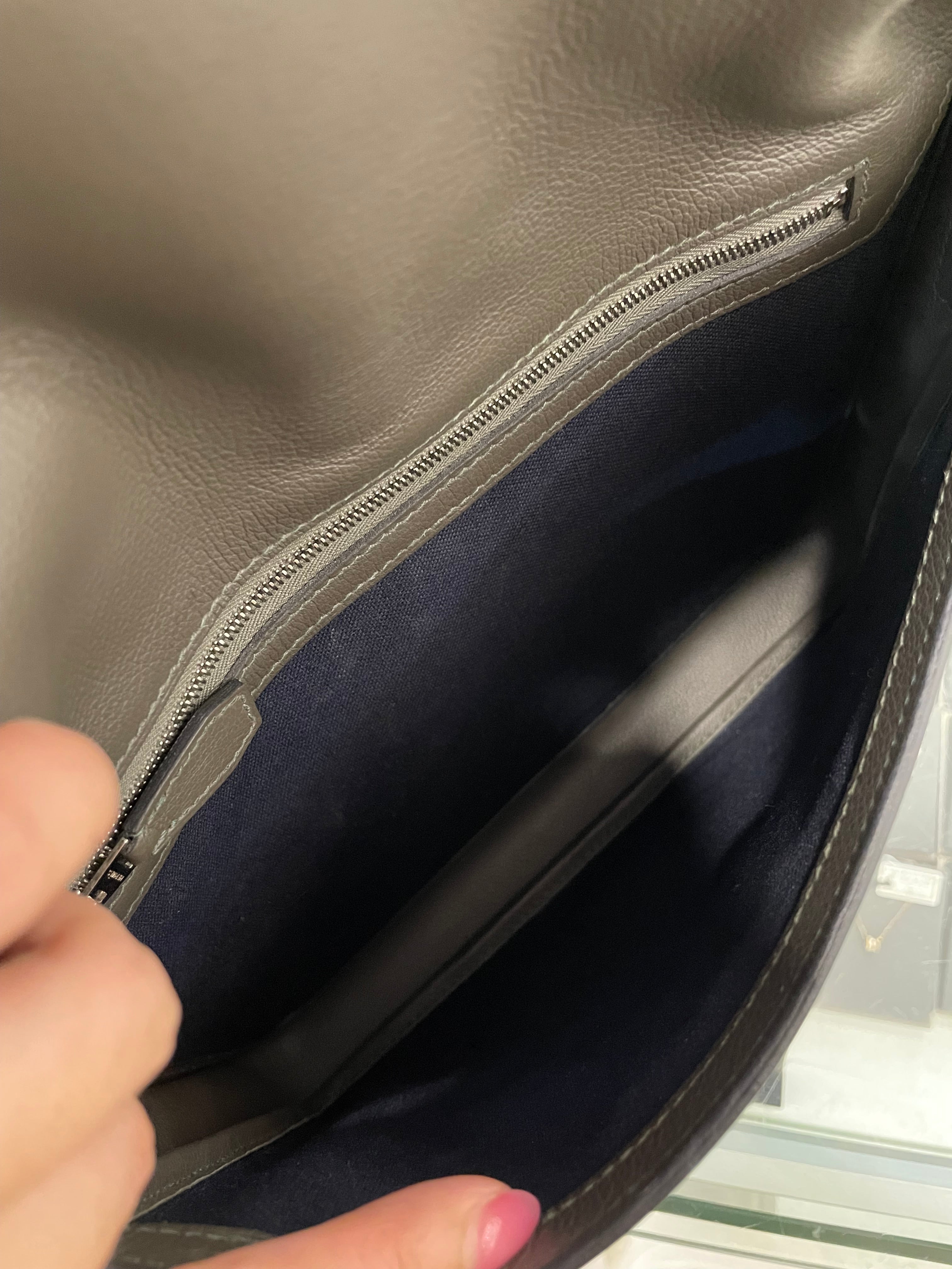 - Overall: Pristine structured Steve Light Junior shape, no deformation; rich Gris Etain Togo leather finish.