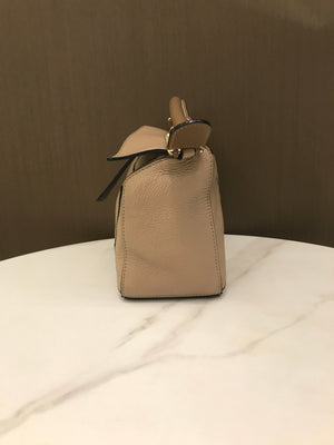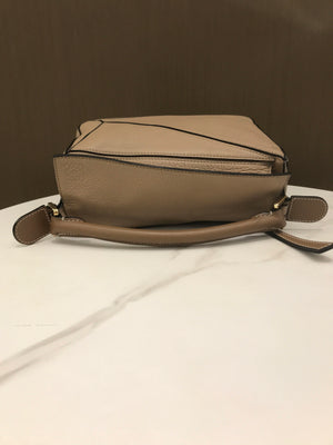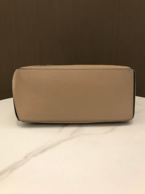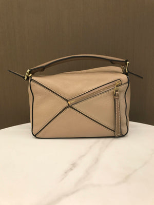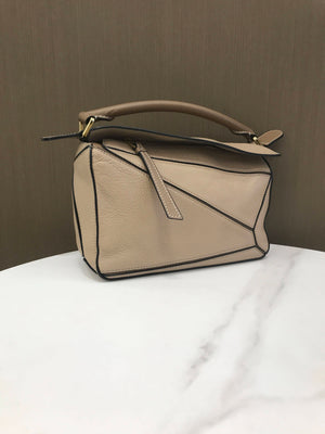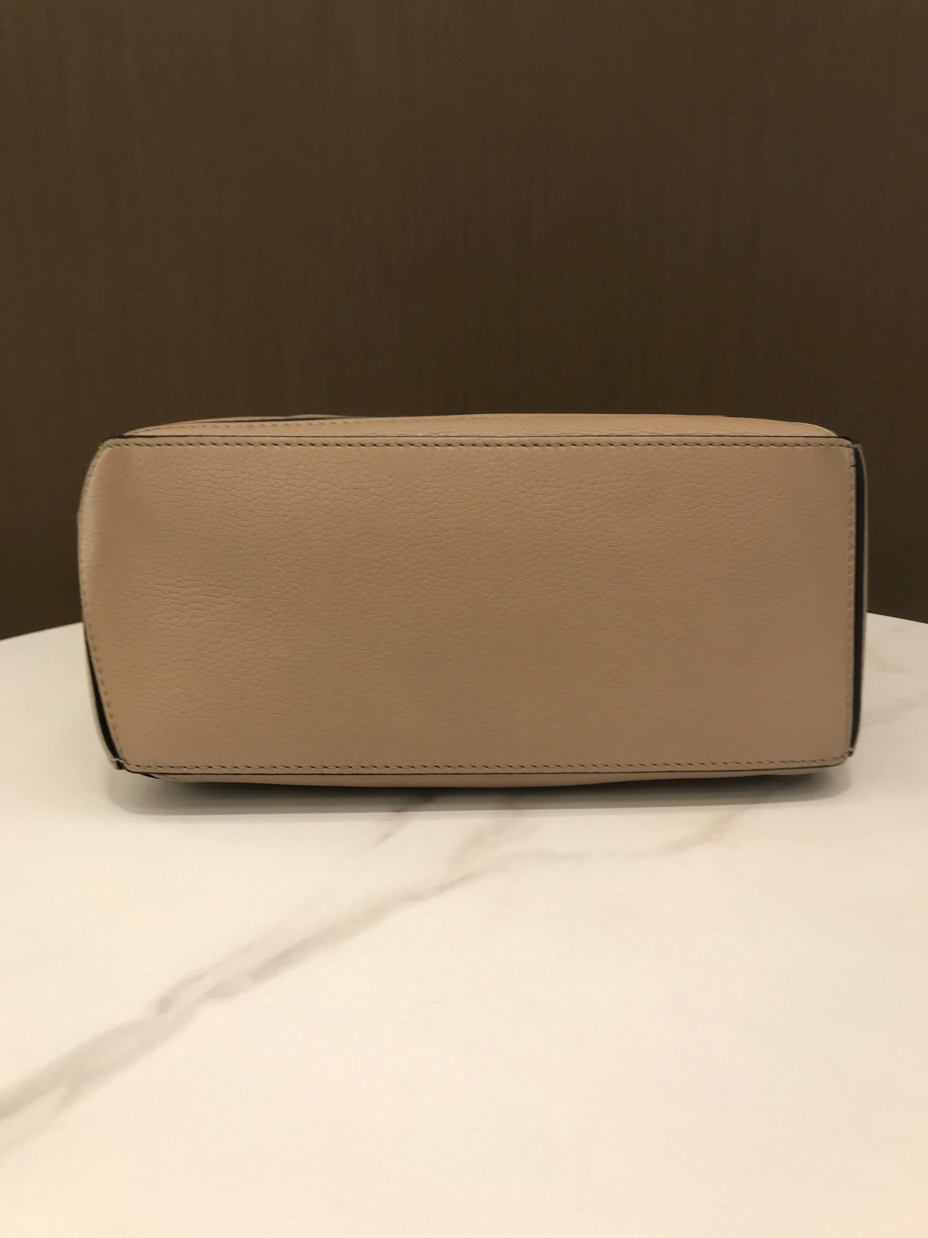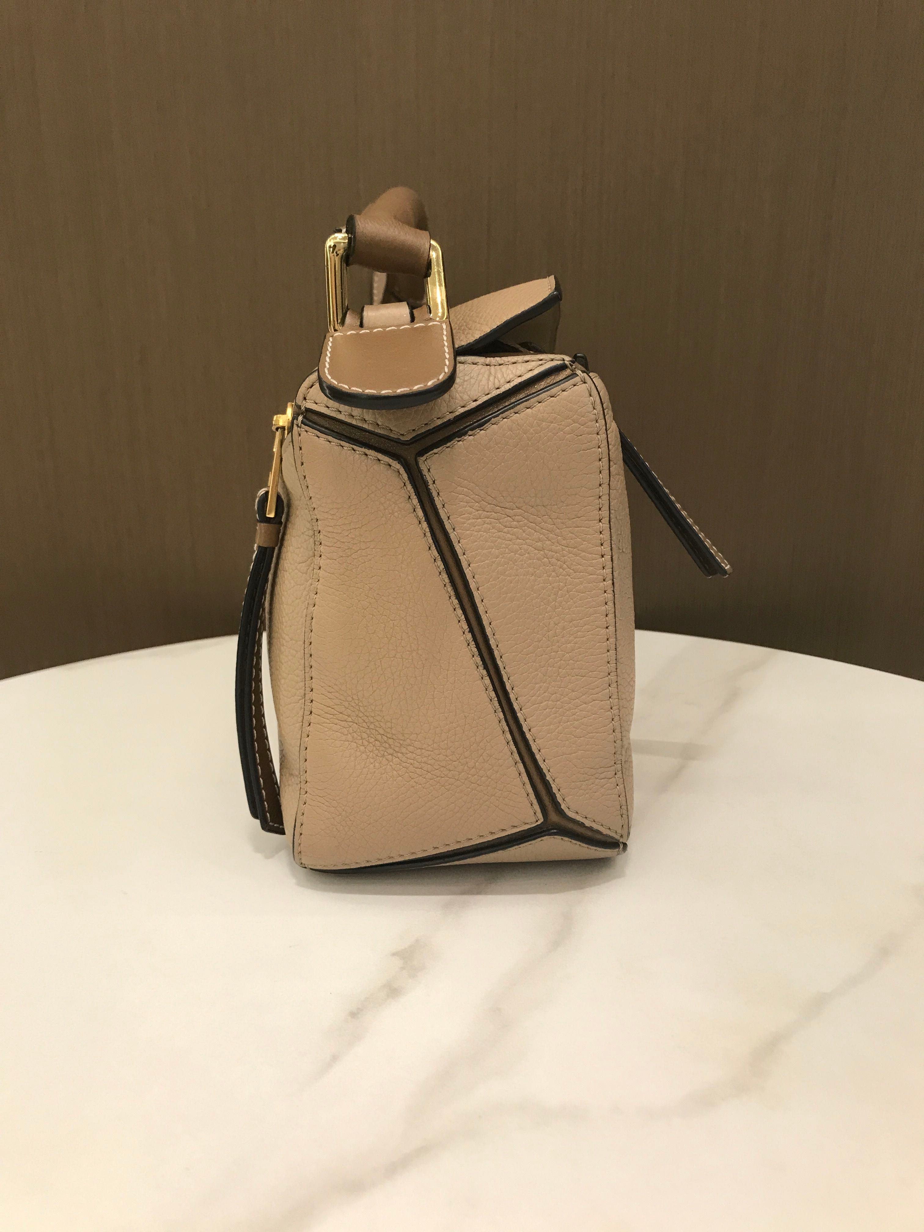 This geometric leather bag is a striking fusion of avant-garde design and everyday practicality. Crafted in sand-colored leather with artful panel stitching and polished hardware, it features a unique structured silhouette with a top handle and detachable shoulder strap for versatile styling. The bag offers generous interior space for daily essentials, making it a standout accessory that balances artistic flair and functional use.