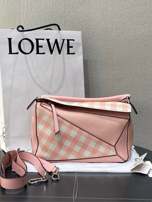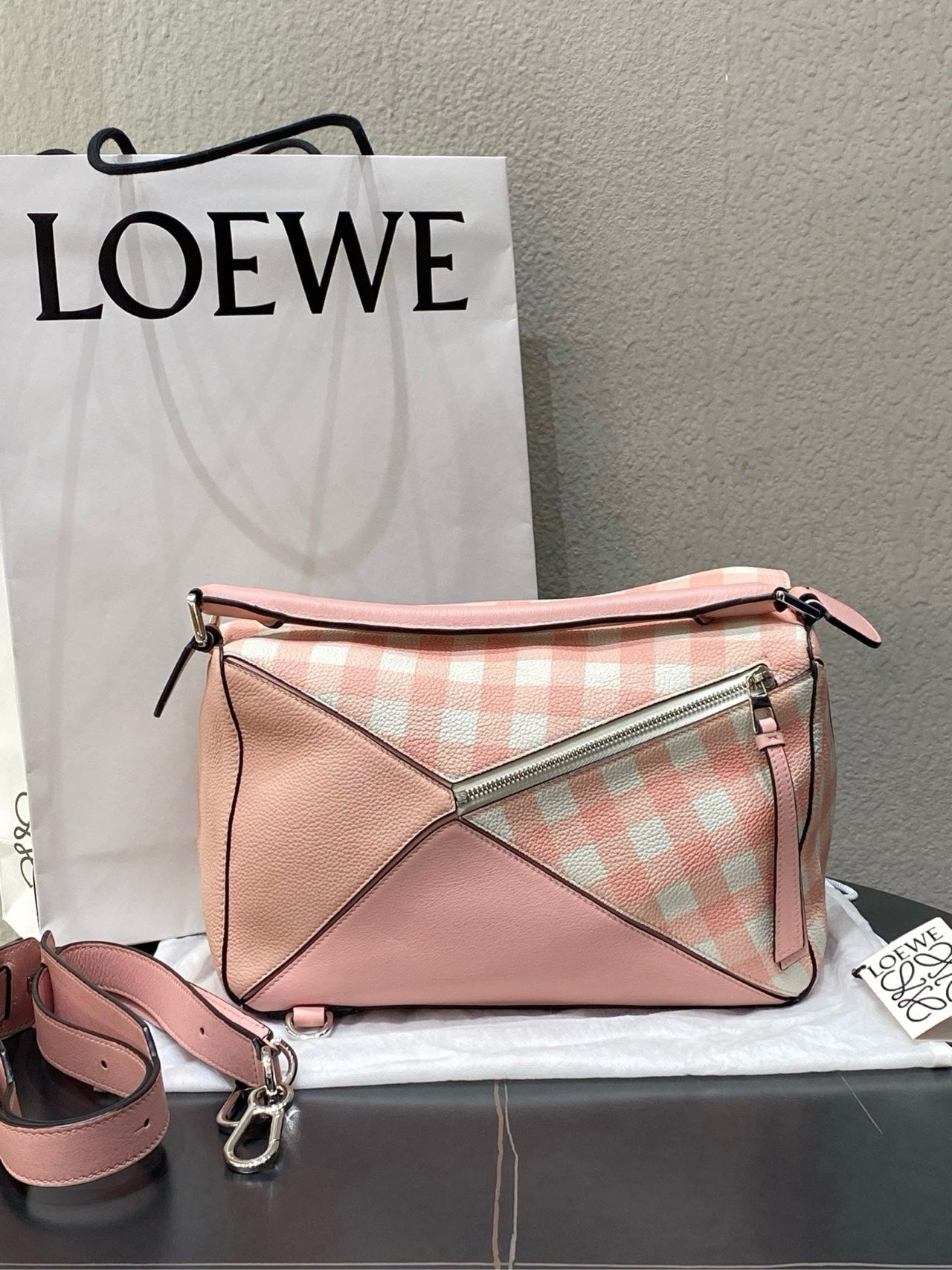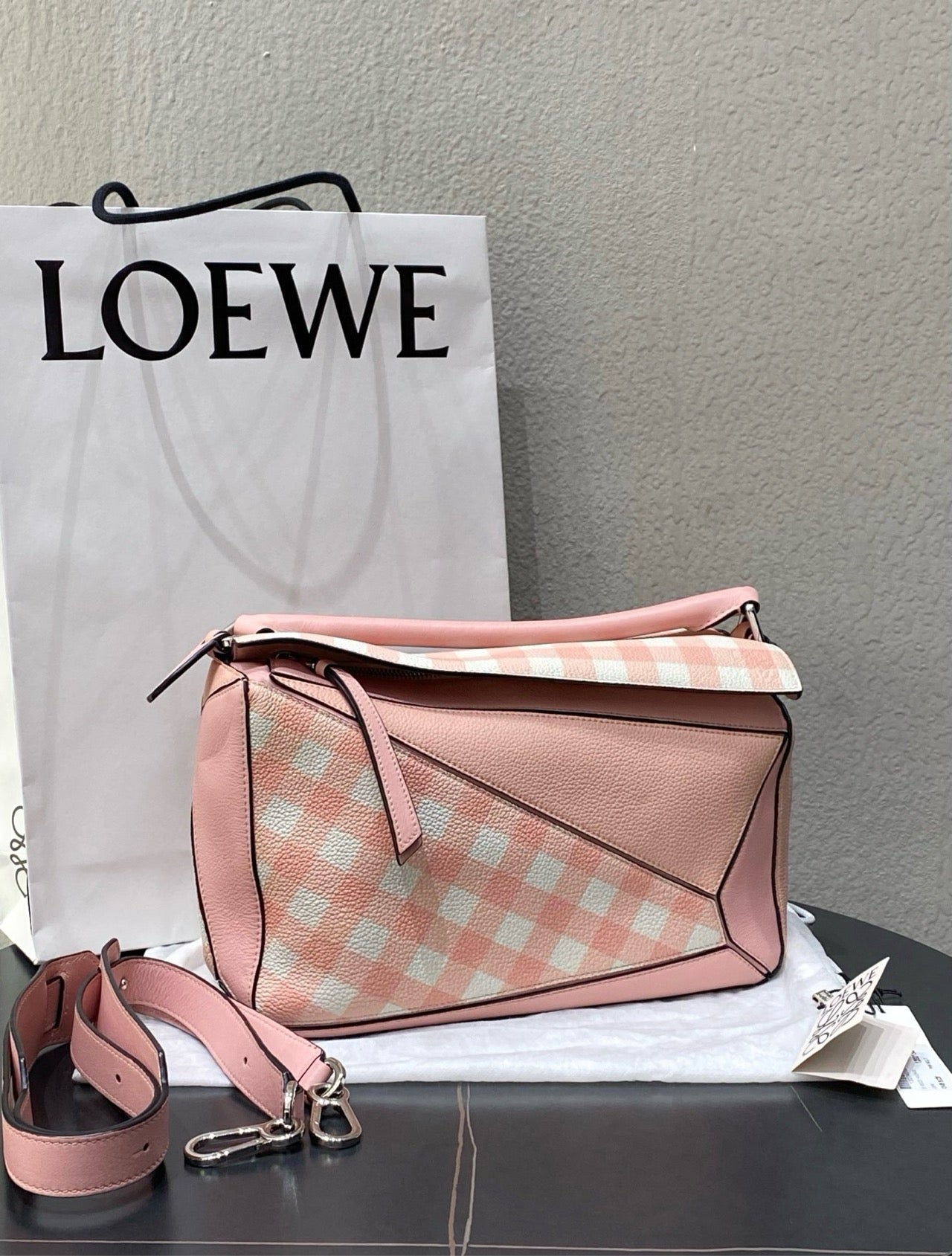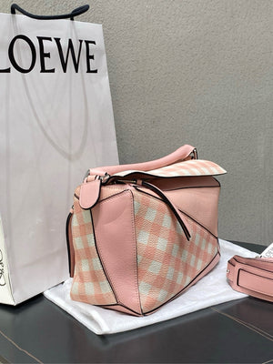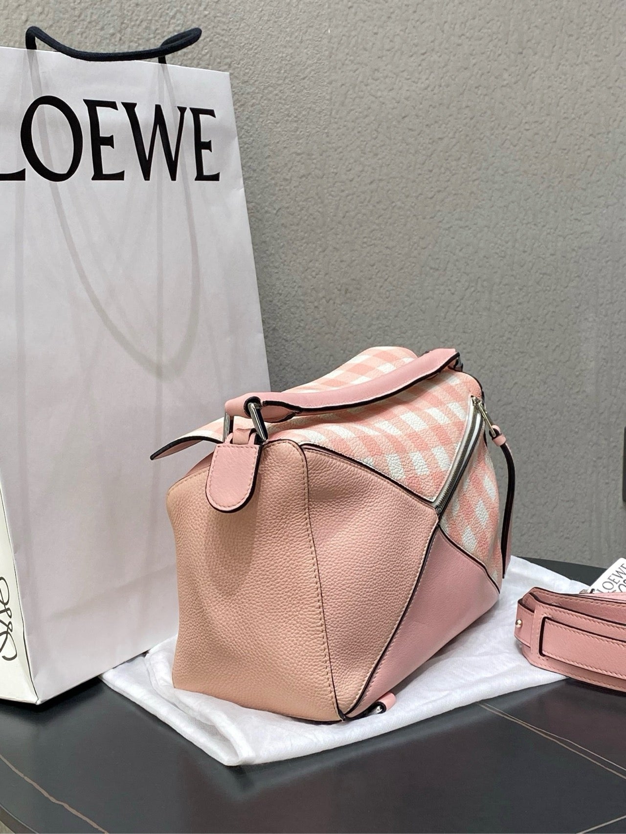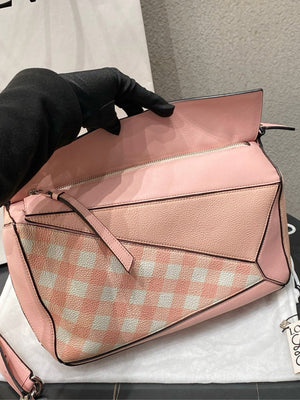 Loewe Puzzle Medium Soft Pink Gingham – Excellent Condition