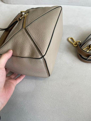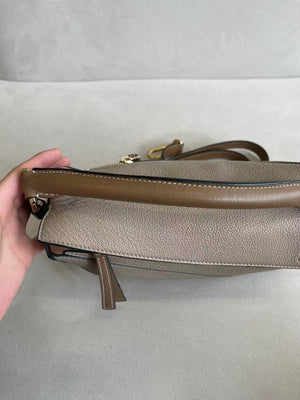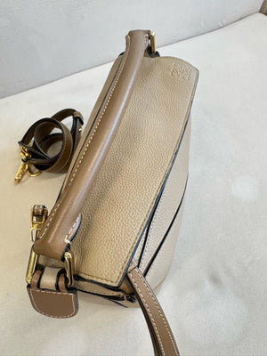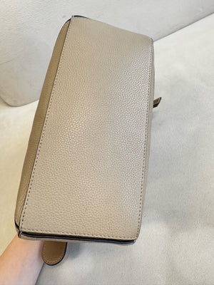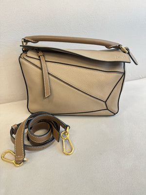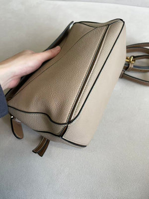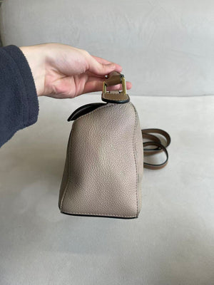 This geometric leather bag is a striking fusion of avant-garde design and everyday practicality. Crafted in sand-colored leather with artful panel stitching and polished hardware, it features a unique structured silhouette with a top handle and detachable shoulder strap for versatile styling. The bag offers generous interior space for daily essentials, making it a standout accessory that balances artistic flair and functional use.