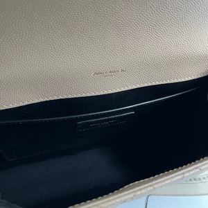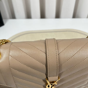 • Design Highlights: Quilted diamond and chevron stitching, iconic gold YSL logo, premium textured leather
