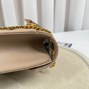 Excellent 98 new condition. Grained leather remains smooth and well-maintained with minimal signs of use. Gold-tone hardware retains its lustre, the iconic quilted pattern stays crisp, and the overall shape is well-preserved for long-term use.