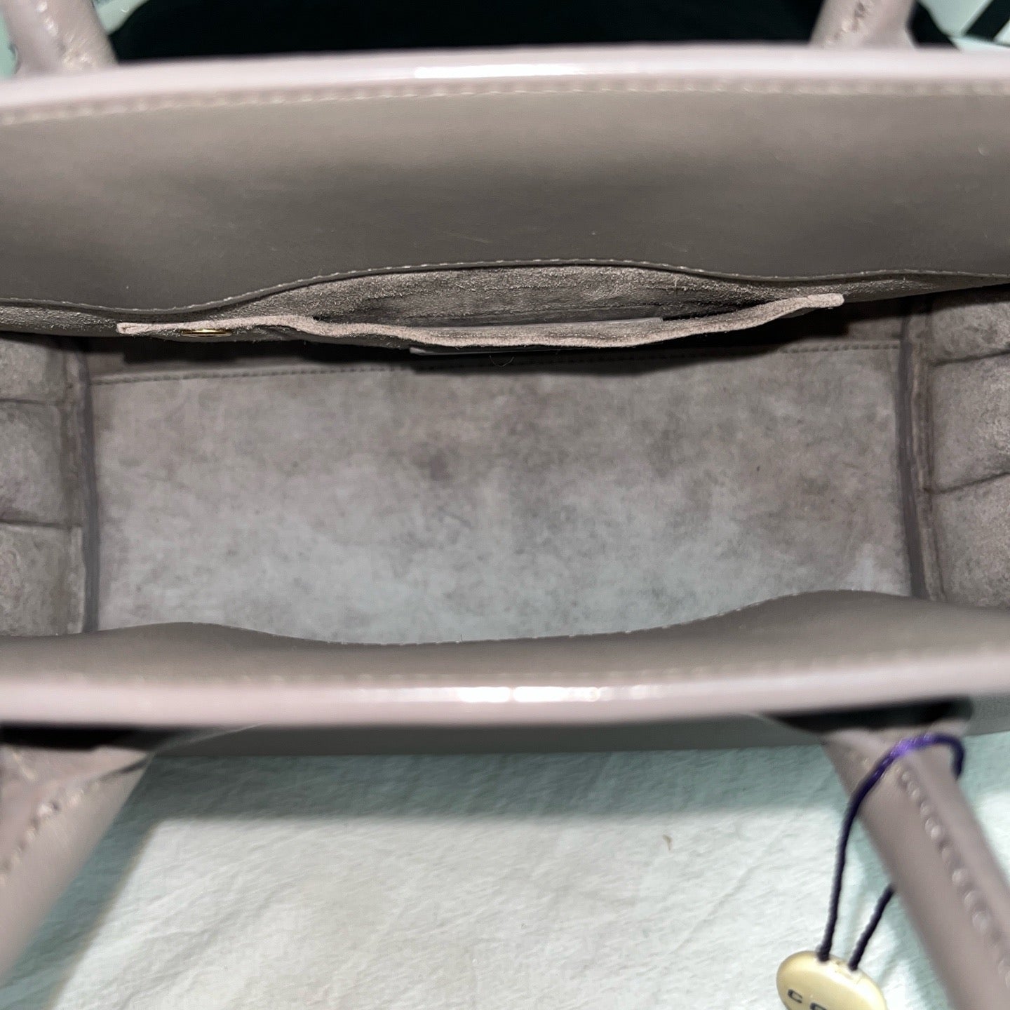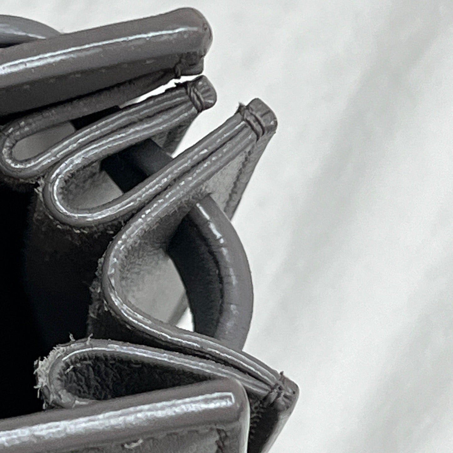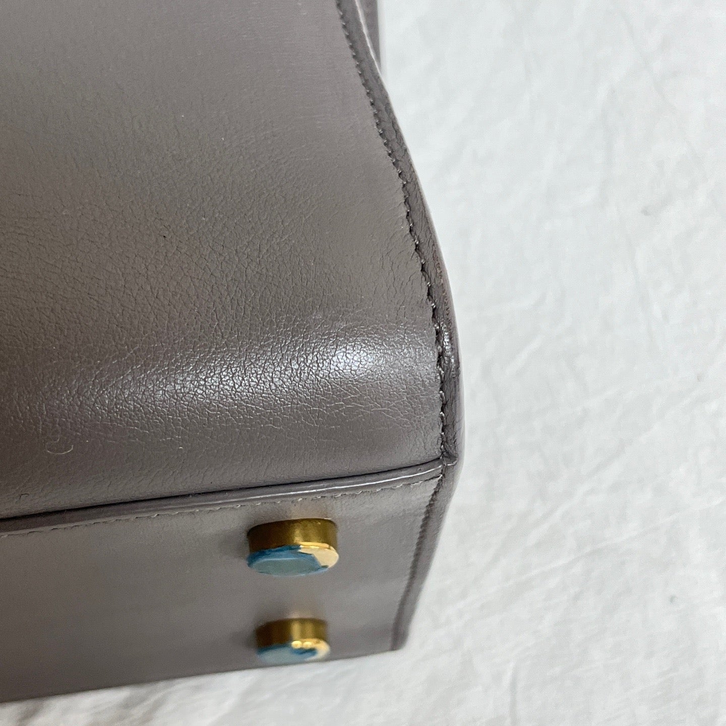 • Grey calfskin leather clean with light natural wear