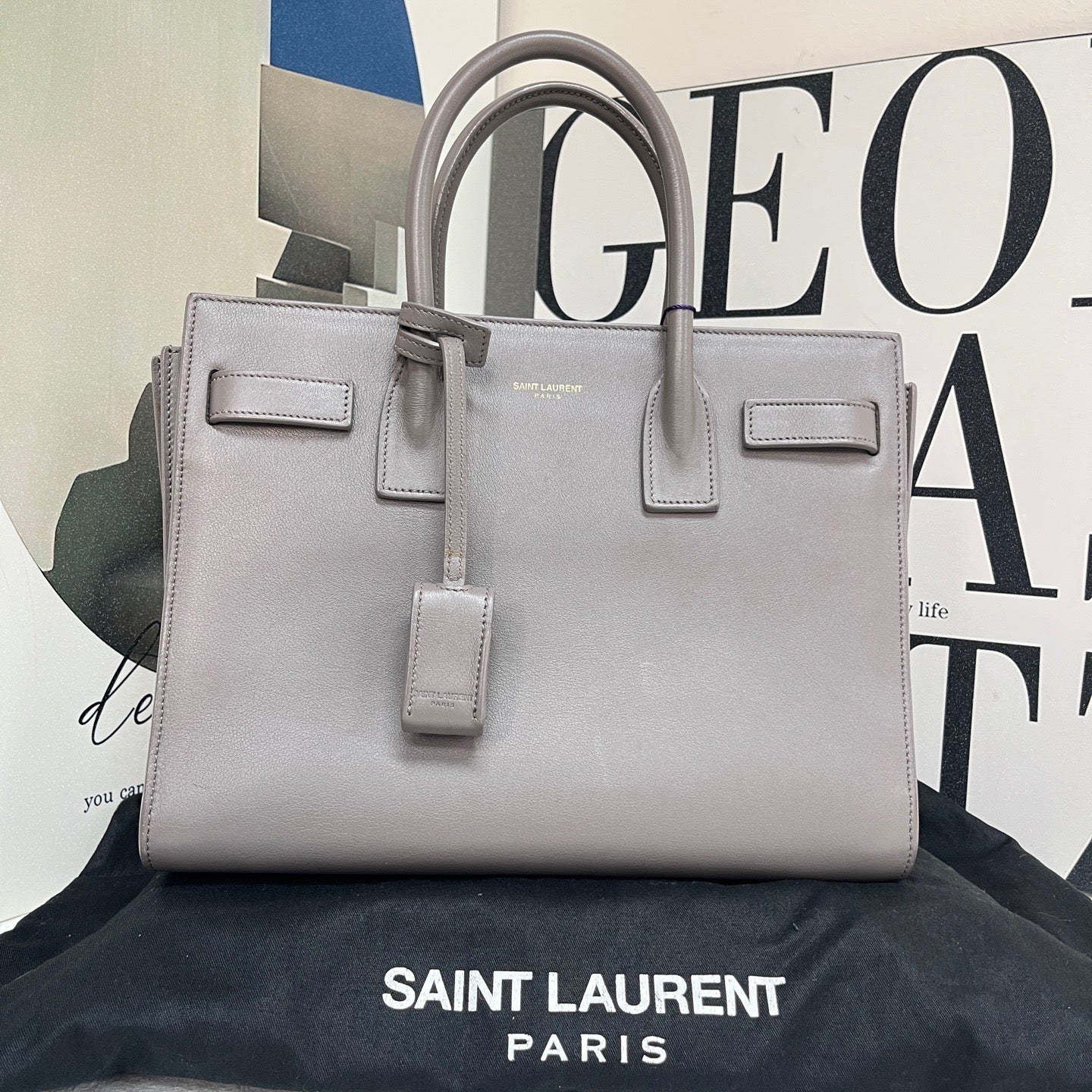 Saint Laurent Grey Calfskin Sac De Jour