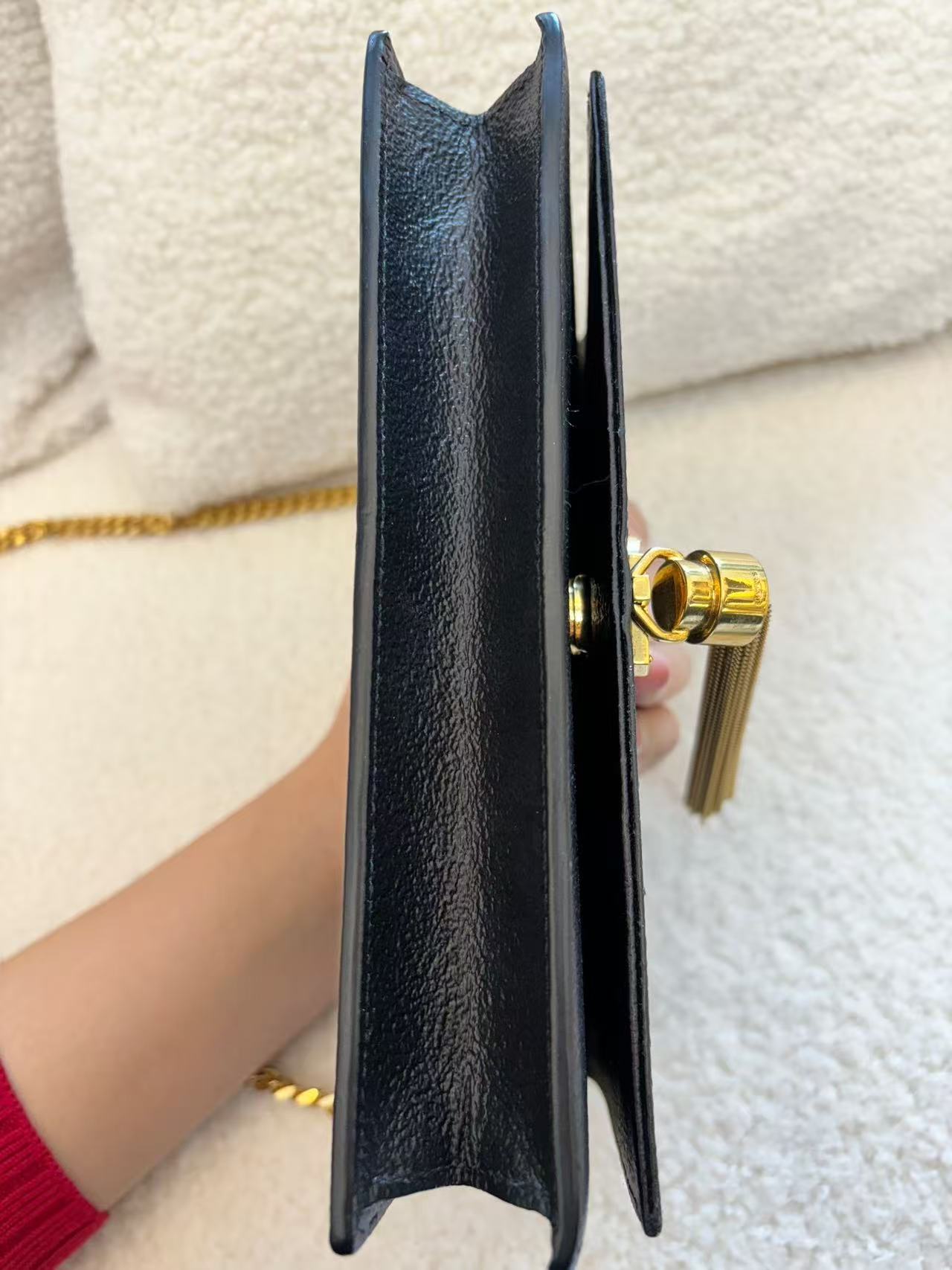 • Feature: Iconic YSL monogram, gold-tone tassel detail, structured flap design
